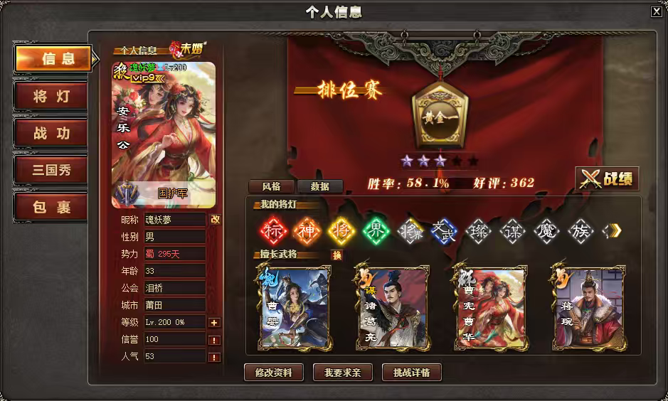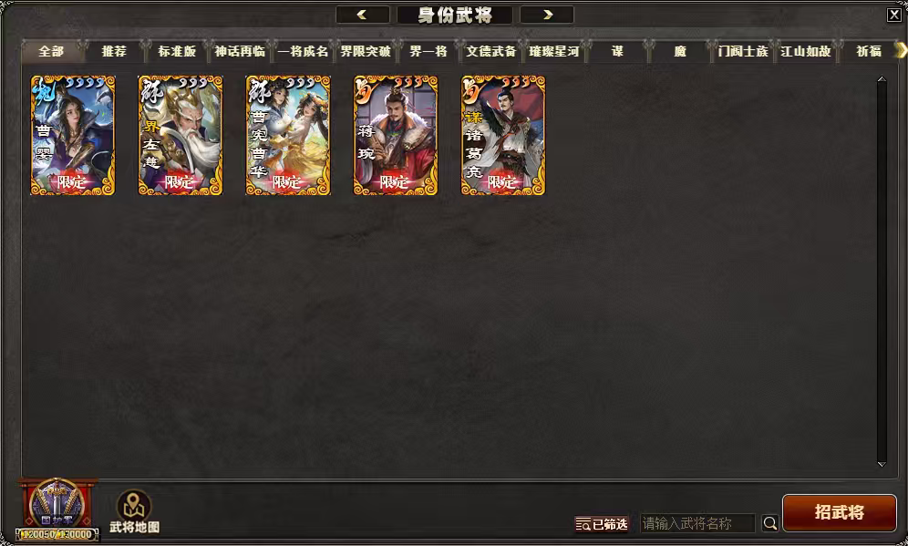 装备描述:谋诸葛亮蒋琬曹婴二曹张华379将 张华谋庞统吕伯奢杨婉族王允酒馆将齐