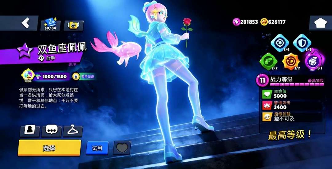 装备描述:EVA皮肤双鱼座满级90极充,每个英雄都有史诗双星辉妙具能力,63000杯