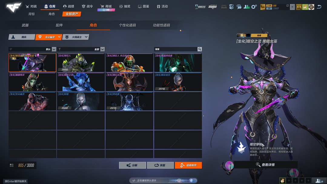 新生化角色皮肤满⭐新灵狐生化满级小人枪⭐女巫万圣节皮肤⭐熟练度满⭐斗战圣佛全套