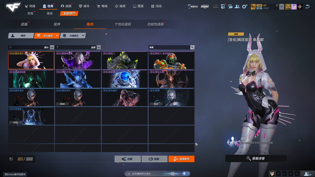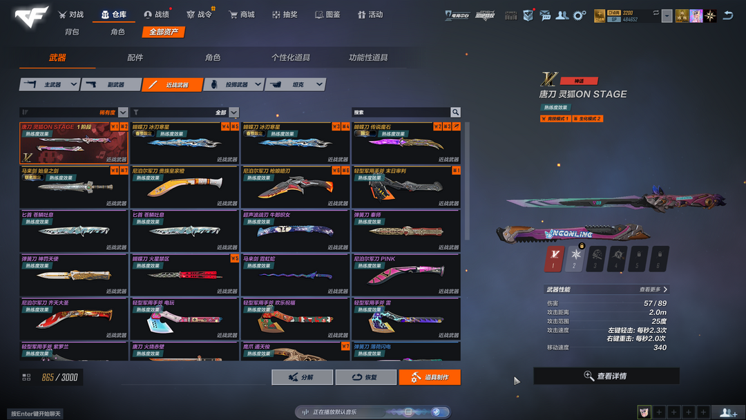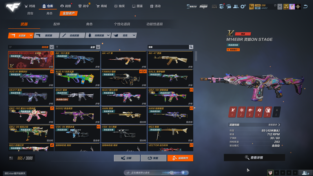 生化全齐✅灵狐全套✅hk14雷龙祖龙狙始皇剑✅熟练度拉满✅冰刃寒星
