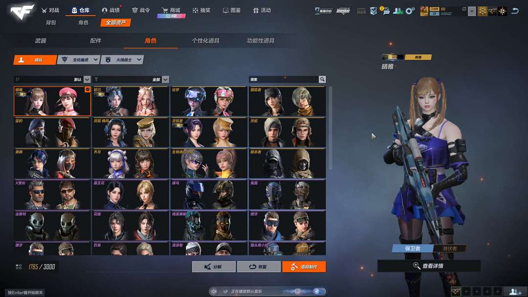 5神话,大部分枪都有金皮,8个背包,枪几乎满熟练度,生化幽灵救世主齐全,两个ACE结算动画