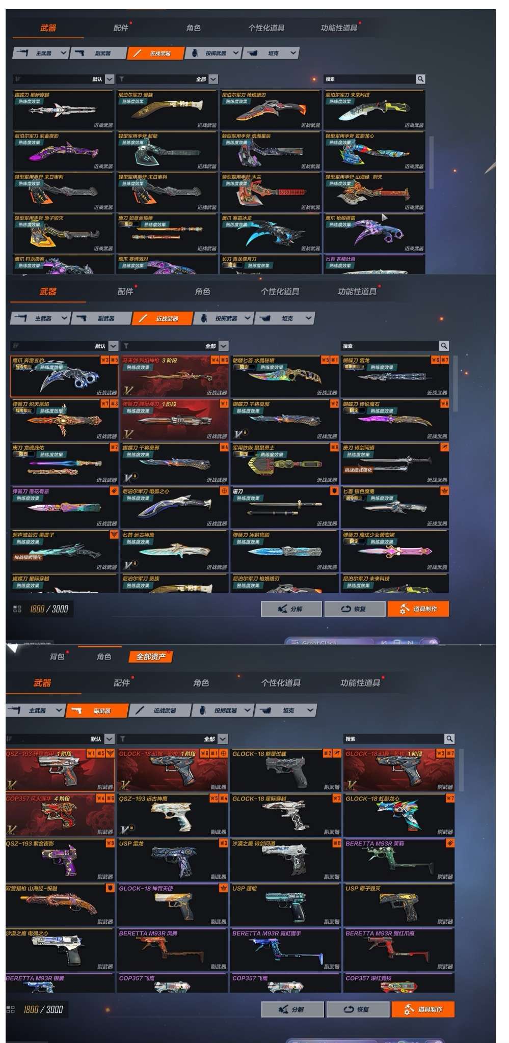 神话主武器都有顶级帐号♡,爆破,追击,挑战三开花⚡⚡,新活动新皮,还有很多炫彩。生化,英雄都有皮肤。