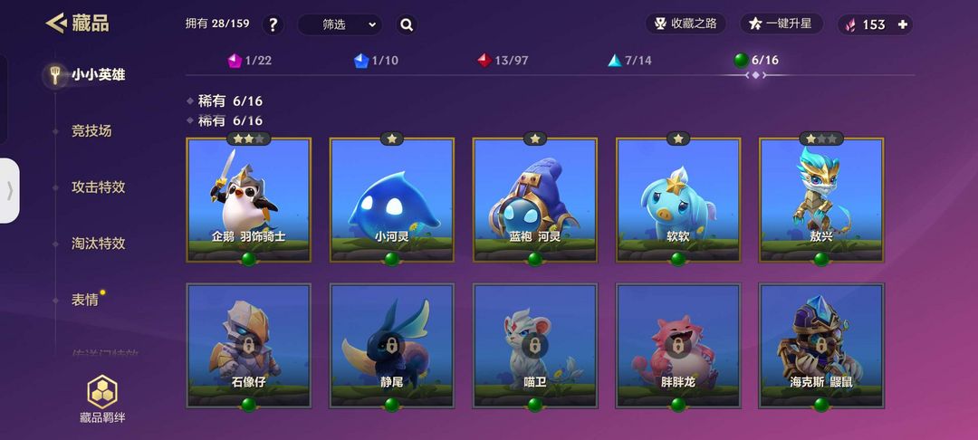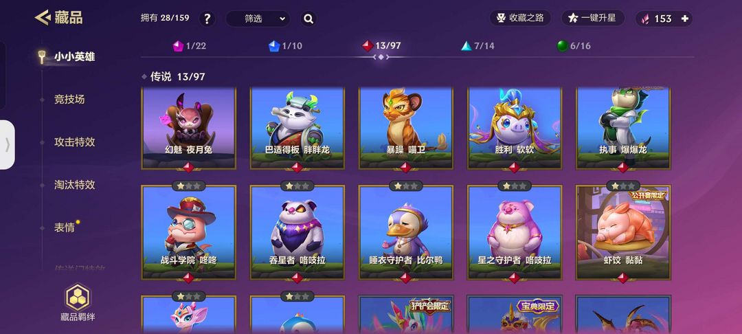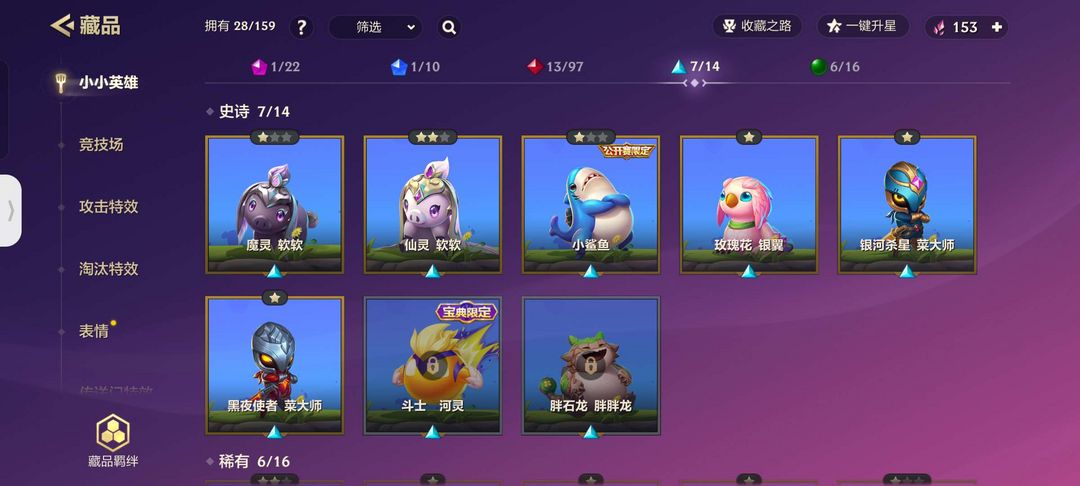 大师段位,小小英雄1神话,13传说,7史诗,6稀有,其他自己看