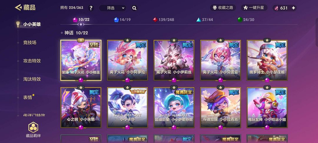 限制: 撤单率<9%才可租用此帐号装备描述:KDA有小小萨勒芬妮,小小卡莎,离子火花小小格温和小小阿罗拉实在可爱,适合喜欢离子火花的玩家