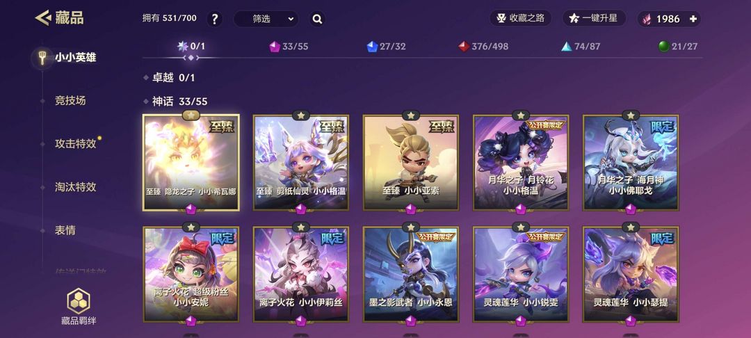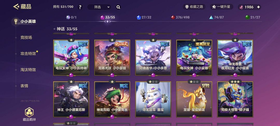 (33神话小小英雄,可以皮肤共享)至臻龙女+至臻剪纸格温,胡子猫攻击特效+龙虎斗兽击