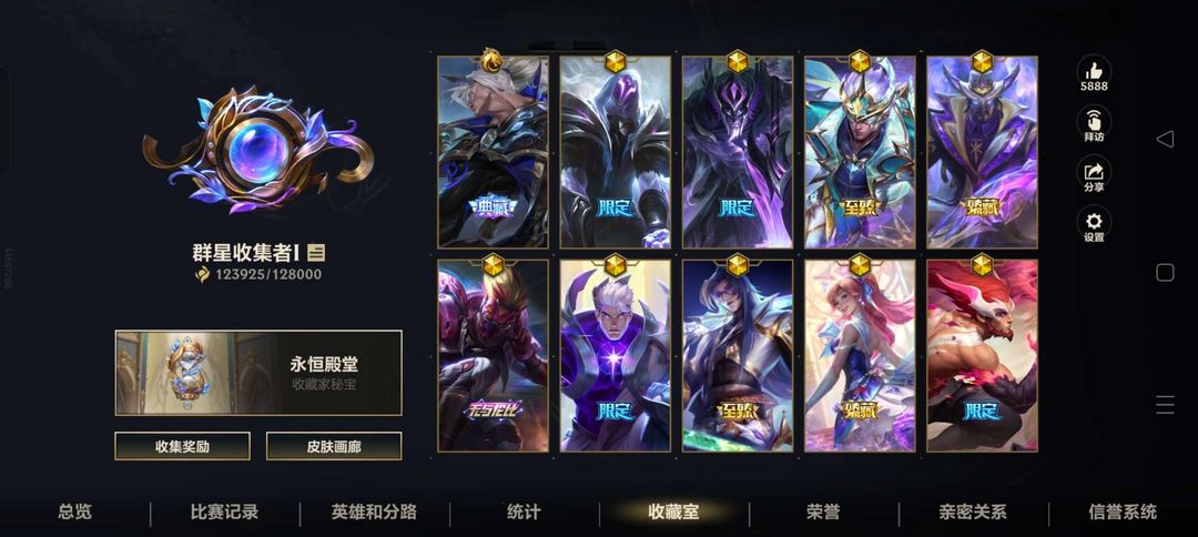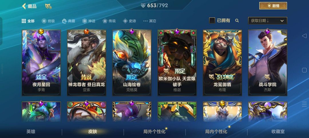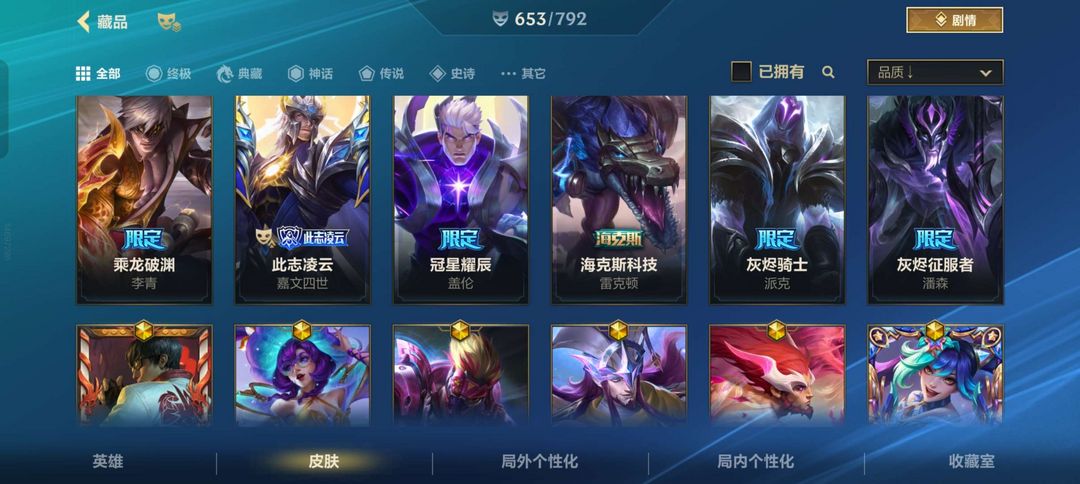 可排位 段位至尊王者 653个皮肤 动东西白嫖挂机拉黑⭐超武腕豪⭐天赋觉醒全皮⭐双城之战全皮等