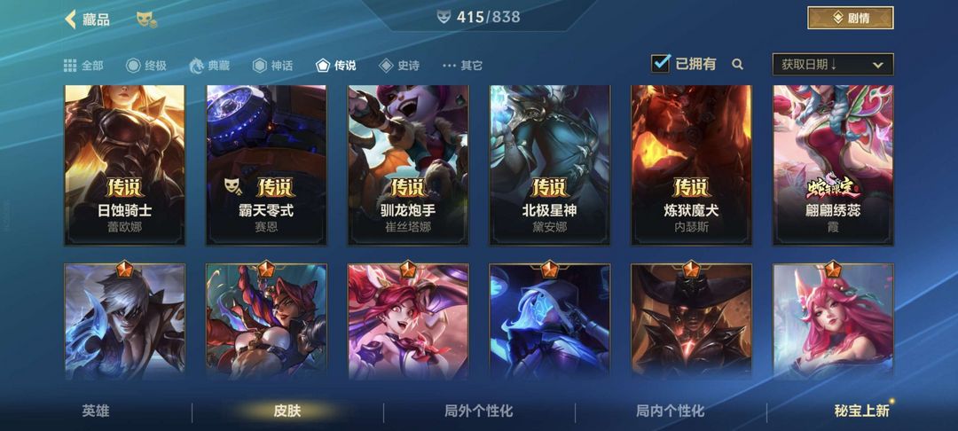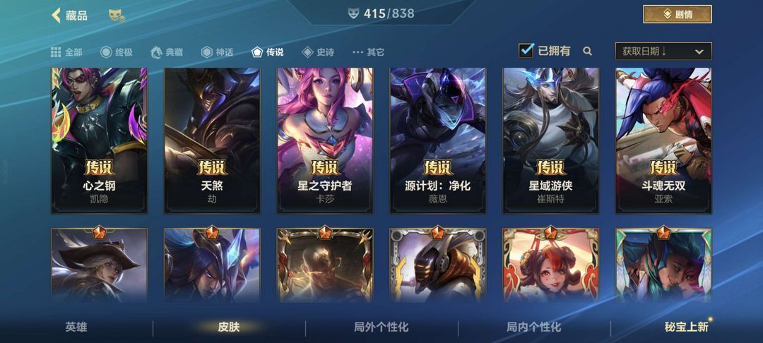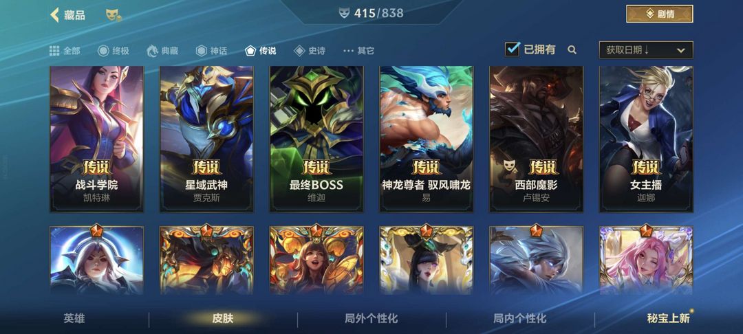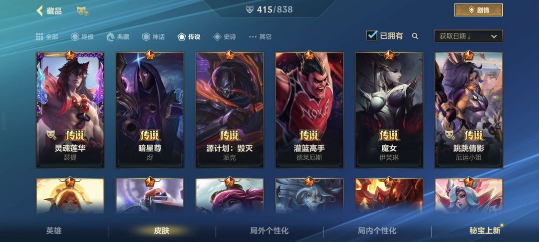 可排/8神话46传说415皮/臻藏光影剑魔/至臻永恩金克斯/情人节拉克丝ez/北极星皎月
