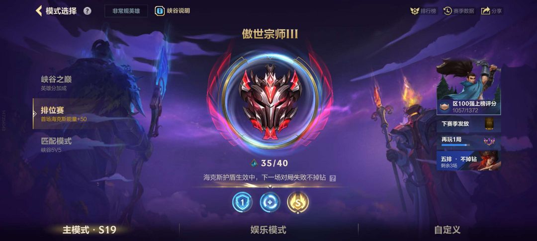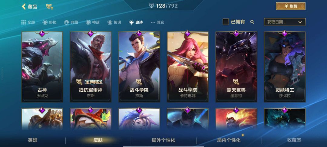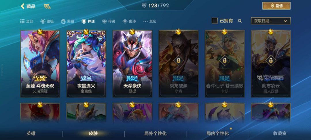 3神话 14传说 65史诗 128皮肤 宗师可排位