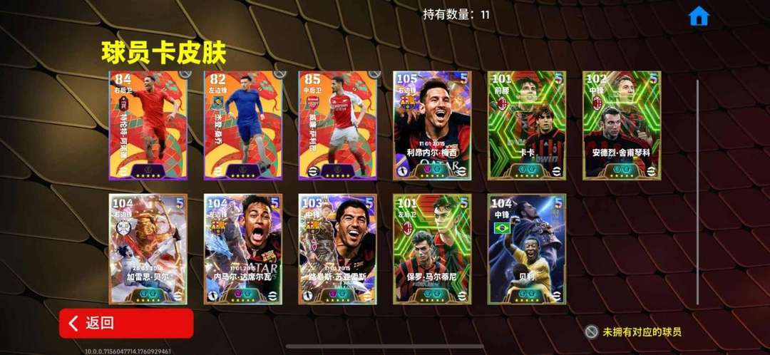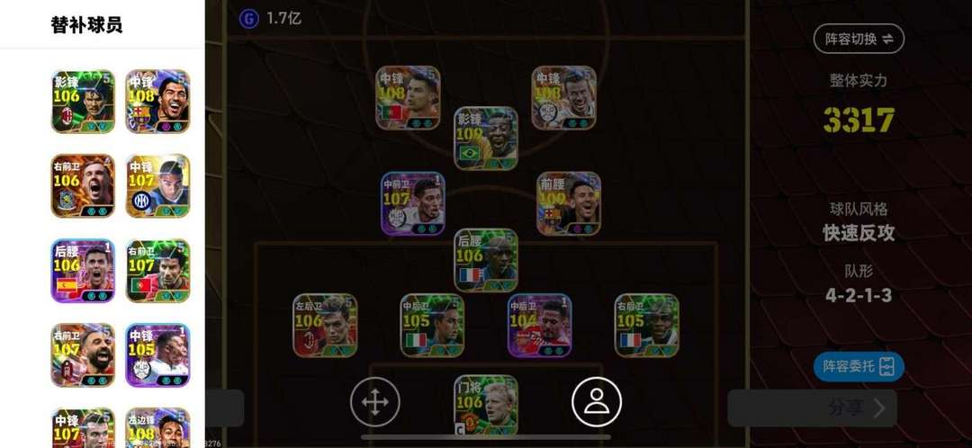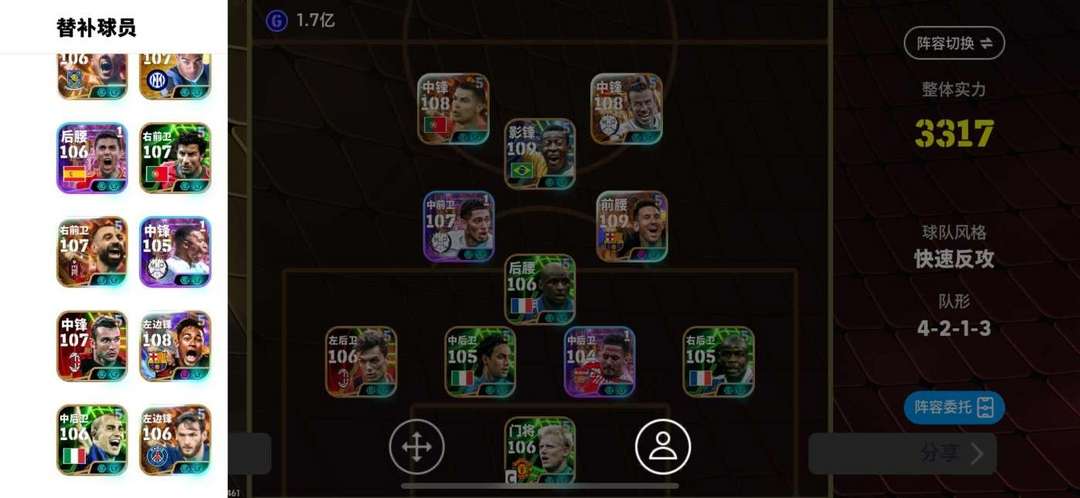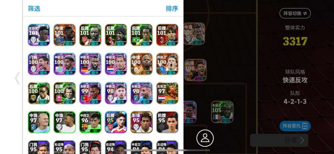 实况足球ios苹果毕业号出租,战力最高3317,几乎全是5闪,各种新球员都有皮肤,可天梯。