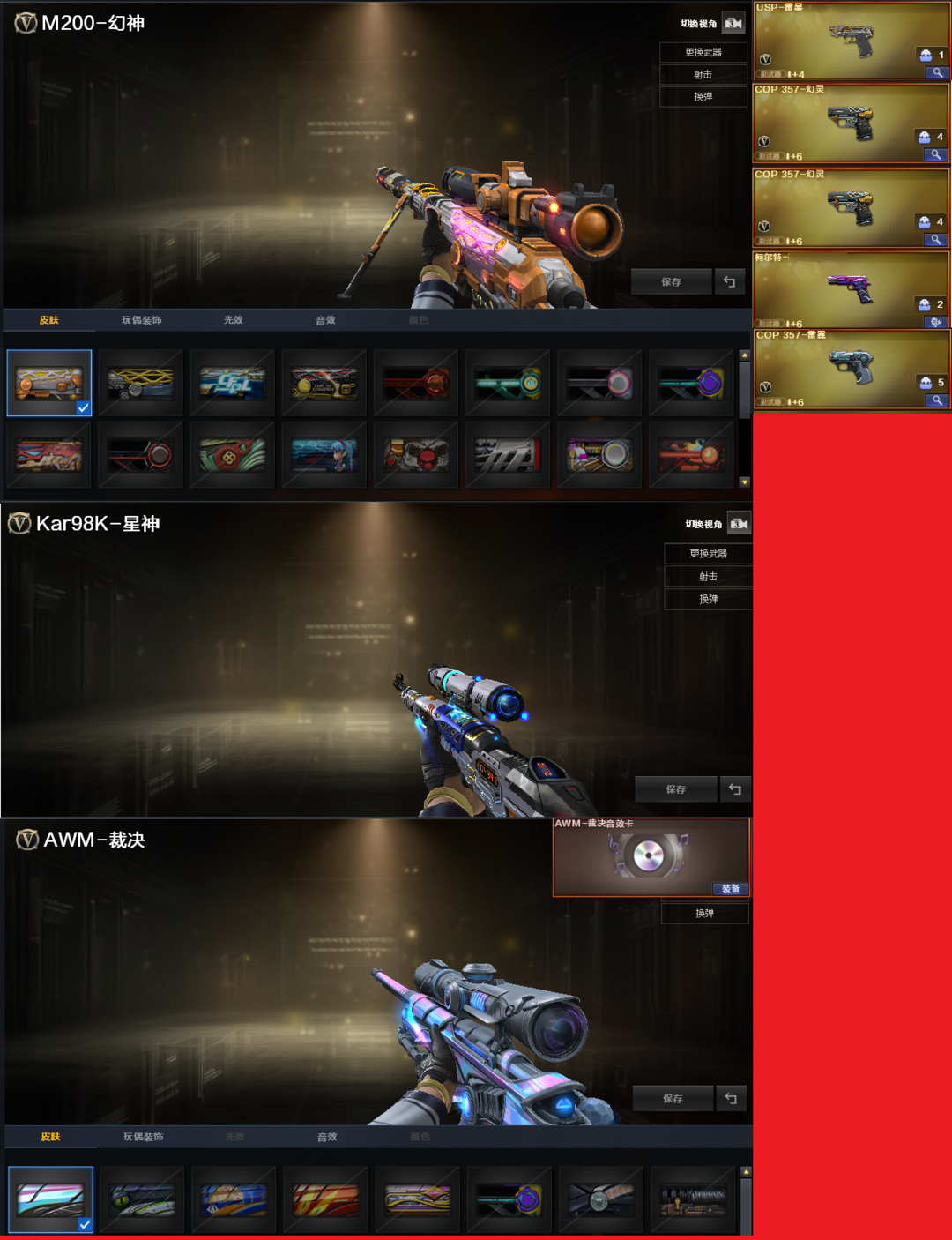 裁决音效|黄忠幻神98K星神+USP雷暴|白虎QBZ蔷薇200V6烈蝴蝶|爆破四防