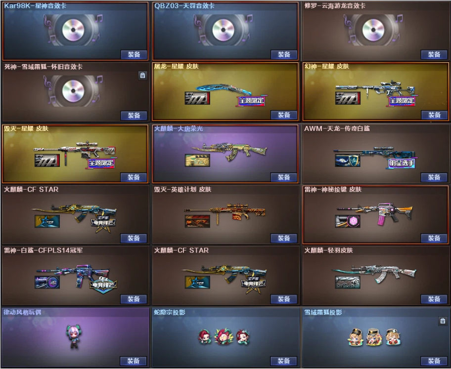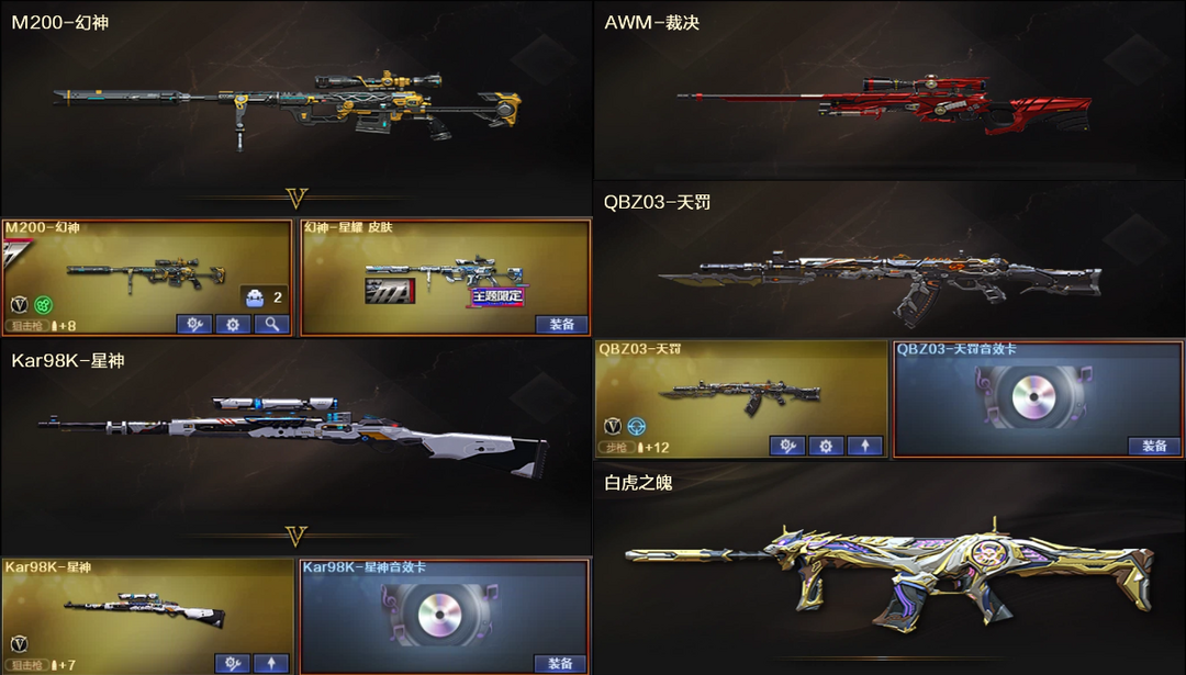爆破装❤幻神星耀+星神音效卡+天罚音效卡❤G36C幻影QBZ蔷薇+白虎之魄金蚀柯尔特❤3防雨墨机械姬