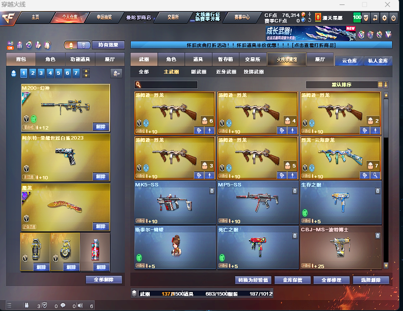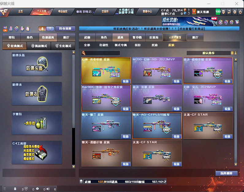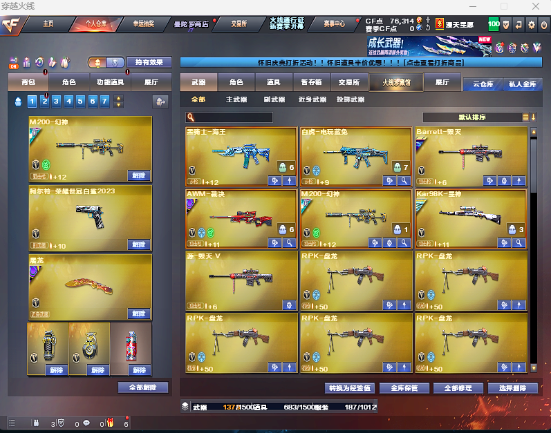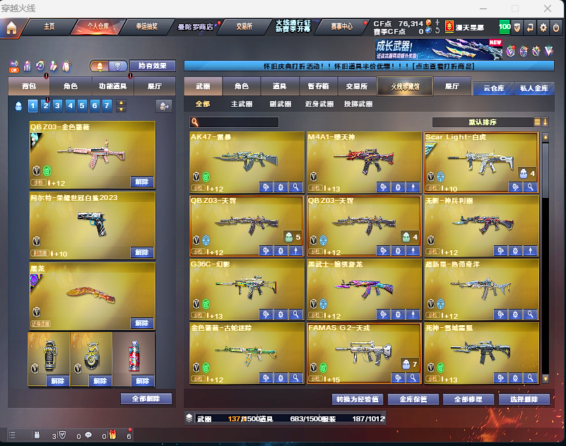四防隼⭐泡泡象⭐冠军之虎⭐幻神三件套⭐g36c幻影⭐星神3件套⭐裁决三件套⭐星火小队⭐6烈6盘
