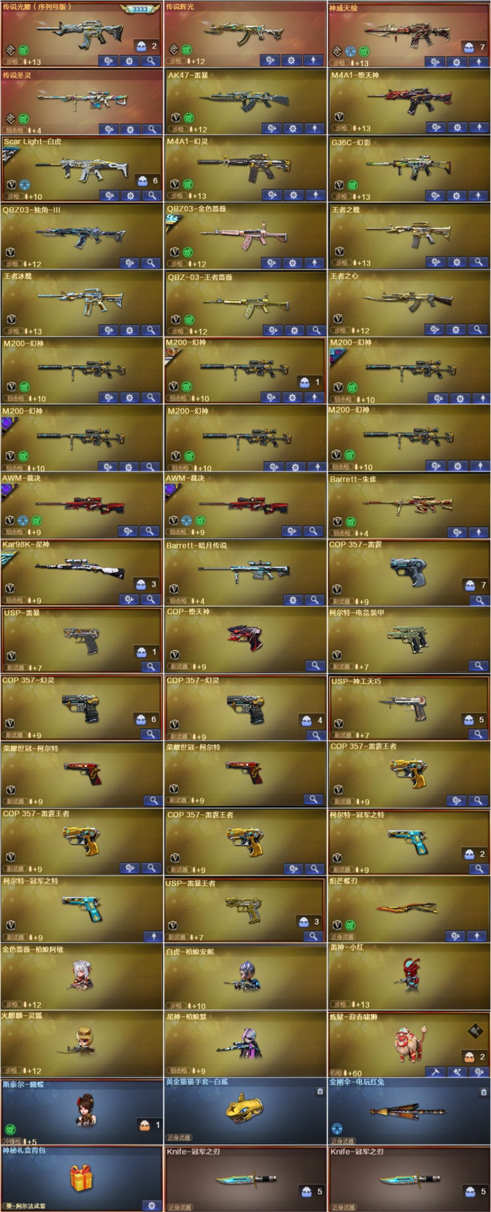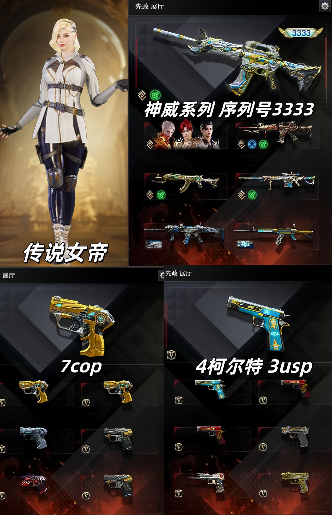 限制: 租号3次及以上 |装备描述:王者武器:USP-雷暴王者;闪光弹-雷暴王者;高爆手雷-雷暴王者;烟雾弹-雷暴王者;天启-悦智-觉醒版;王者之锋-觉醒版;炼狱-悦蓝-觉醒版;王者之光-觉醒版;王者之灵-觉醒版;王者之魂-觉醒版;王者之影-觉醒版;超新星-悦享-觉醒版;COP 357-雷霆王者-觉醒版;雷霆王者之锋-觉醒版;M4A1-雷霆王者;烟雾弹-雷霆王者-觉醒版;烟雾弹-雷霆王者;闪光弹-雷霆王者-觉醒版;闪光弹-雷霆王者;高爆手雷-雷霆王者;王者之啸-觉醒版;QBZ-03-王者蔷薇-觉醒版;王者之魄闪光弹;王者之魄高爆手雷;王者之势-觉醒版;王者冰魄-觉醒版;王者之灵;炫金毁灭;王者之魄;王者之幻-觉醒版;炫金骑士;王者之锋;炼狱-悦蓝;王者之心-觉醒版;王者之击-觉醒版;王者之魄-觉醒版;王者之力;炫金天龙;炫金黑龙;炫金雷神;炫金超新星;炫金武士;玫瑰精灵-悦动;王者之光;王者之心;王者之怒;王者之魂 英雄武器:G36C-幻影;炽芒蝶刃;Scar Light-白虎;闪光弹-神工天巧;烟雾弹-神工天巧;高爆手雷-神工天巧;唐刀-神工天巧;USP-神工天巧;手雷-动感闪耀;烈火-动感闪耀;屠龙-动感闪耀;天神-