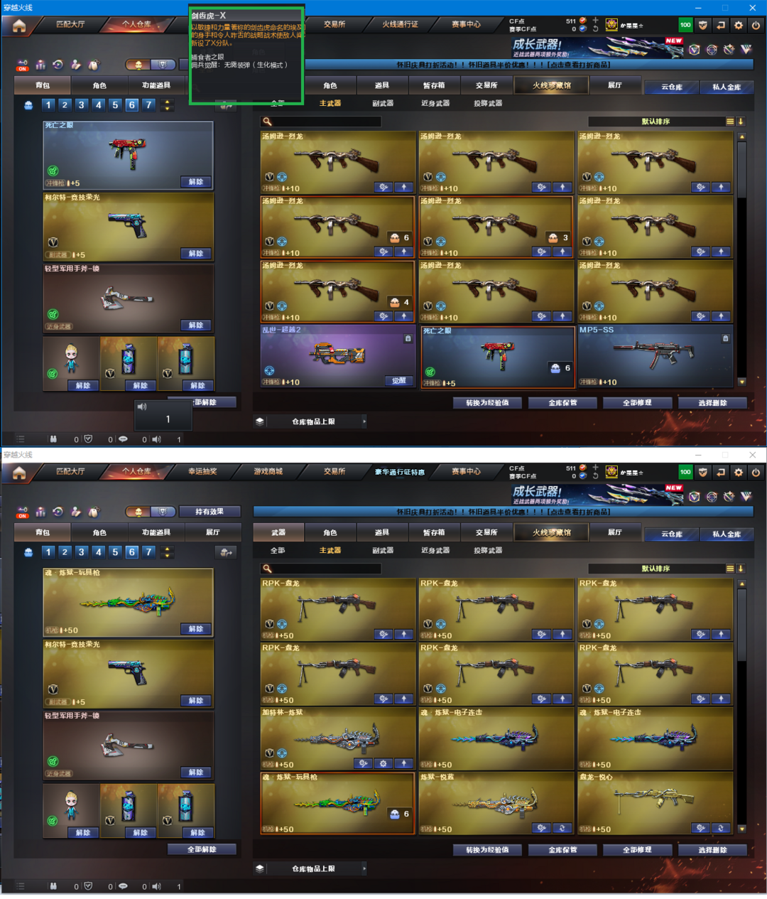 限制: 租号2次及以上 |装备描述:排位:可以、、、、、、、、、、、生化全装(看僵尸血量):无需换弹、6烈龙、6盘龙、炼狱、死亡之眼、手斧镜、生化减速雷、超级对讲机、、、、、、爆破四防:幻神、M200-竞技荣光、、、、、柯尔特竞技荣光、QBZ金色蔷薇、、、毁灭音效、、、1套雷霆、1套雷暴、1套竞技荣光、、、、生化人物(剑齿虎)、爆破四防(司雨)