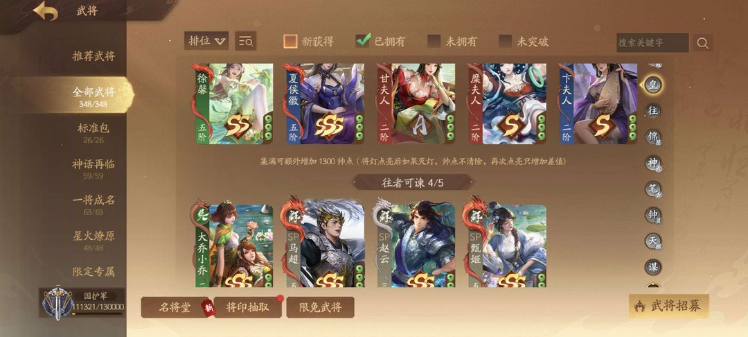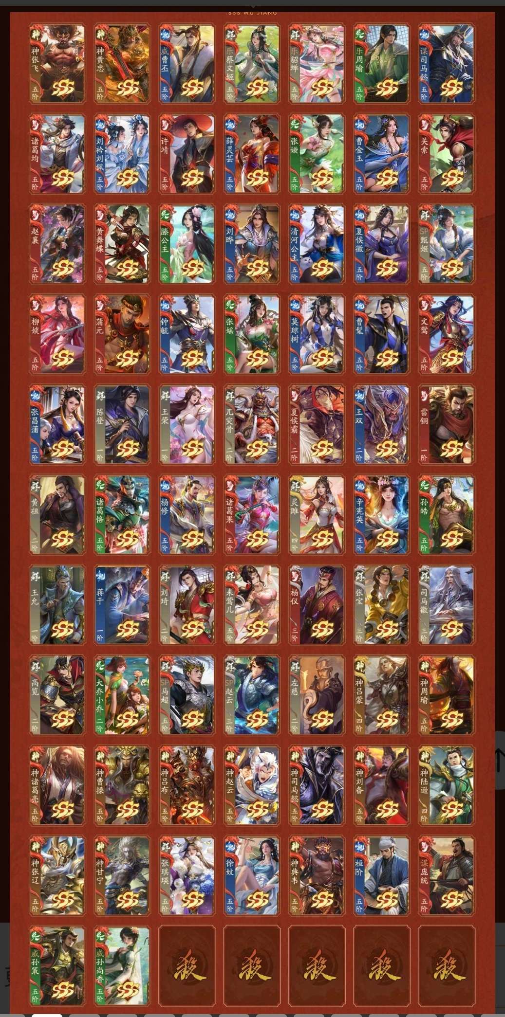威孙尚香威孙策曹丕钟毓桓阶庞宏夏侯徽神张飞神黄忠谋司马懿庞统许靖乐蔡(动)薛灵芸徐馨张琪瑛柳婒