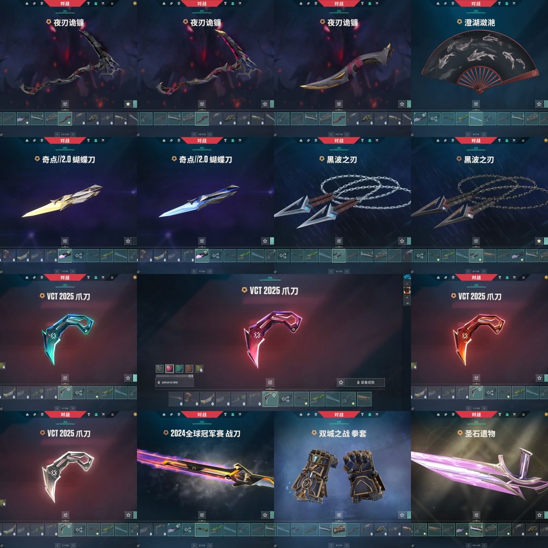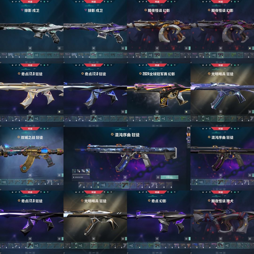 可排位⭐VCT爪刀全炫彩⭐奇点2.0全套⭐双城之战2.0全套⭐黯夜怪谈全套⭐混沌序幕AK⭐电玩套