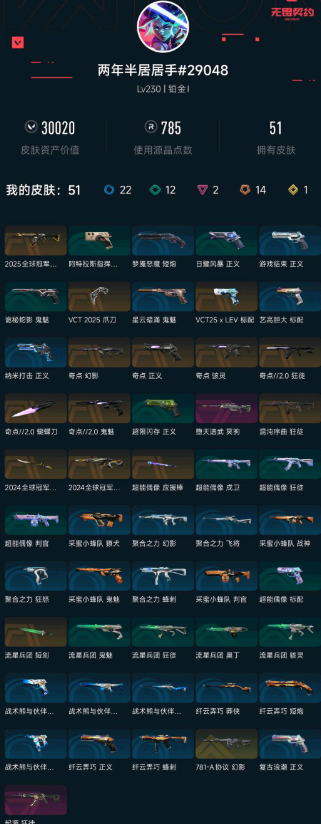 装备描述:vct爪刀,奇点蝴蝶,混沌ak,弃王大狙,24冠军套,781幻影。可排位