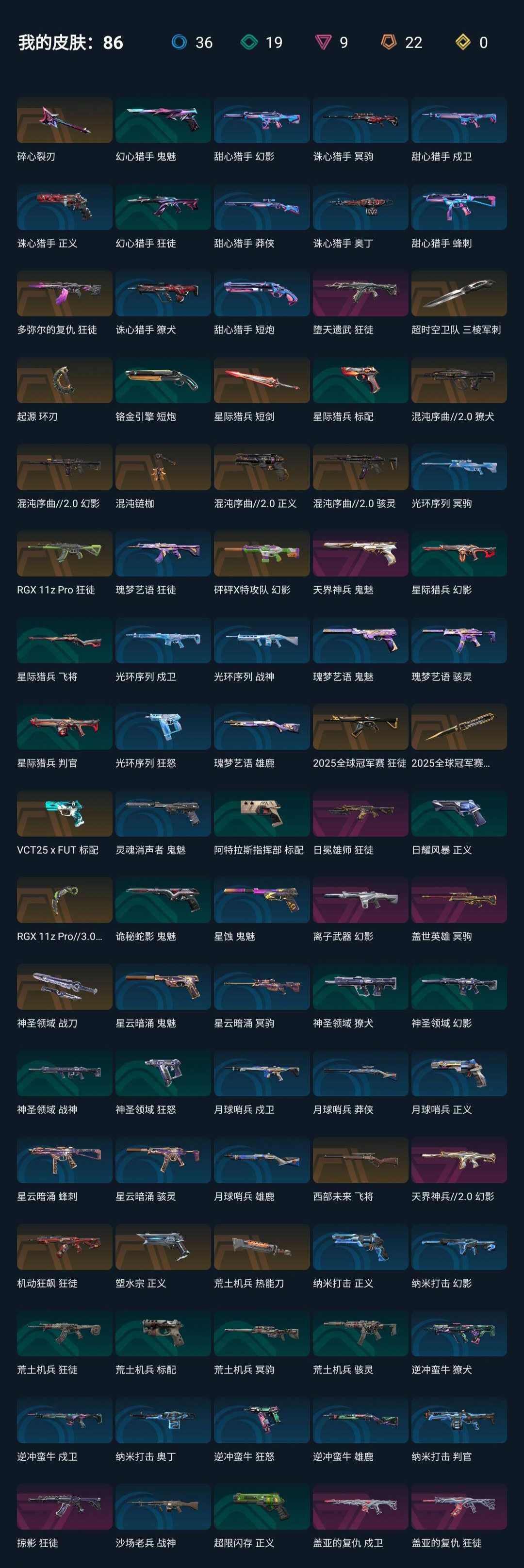 武器皮肤数量:86