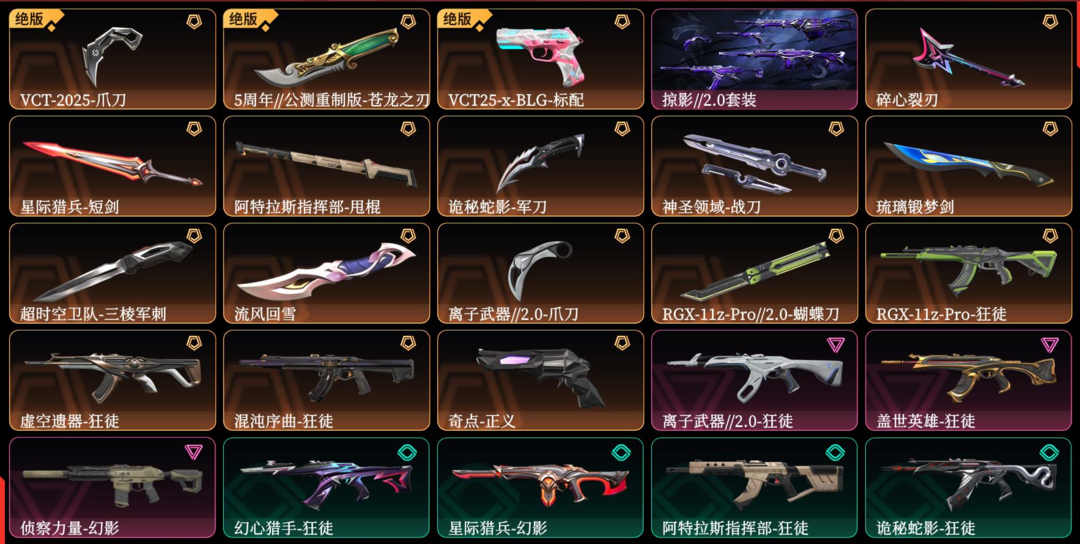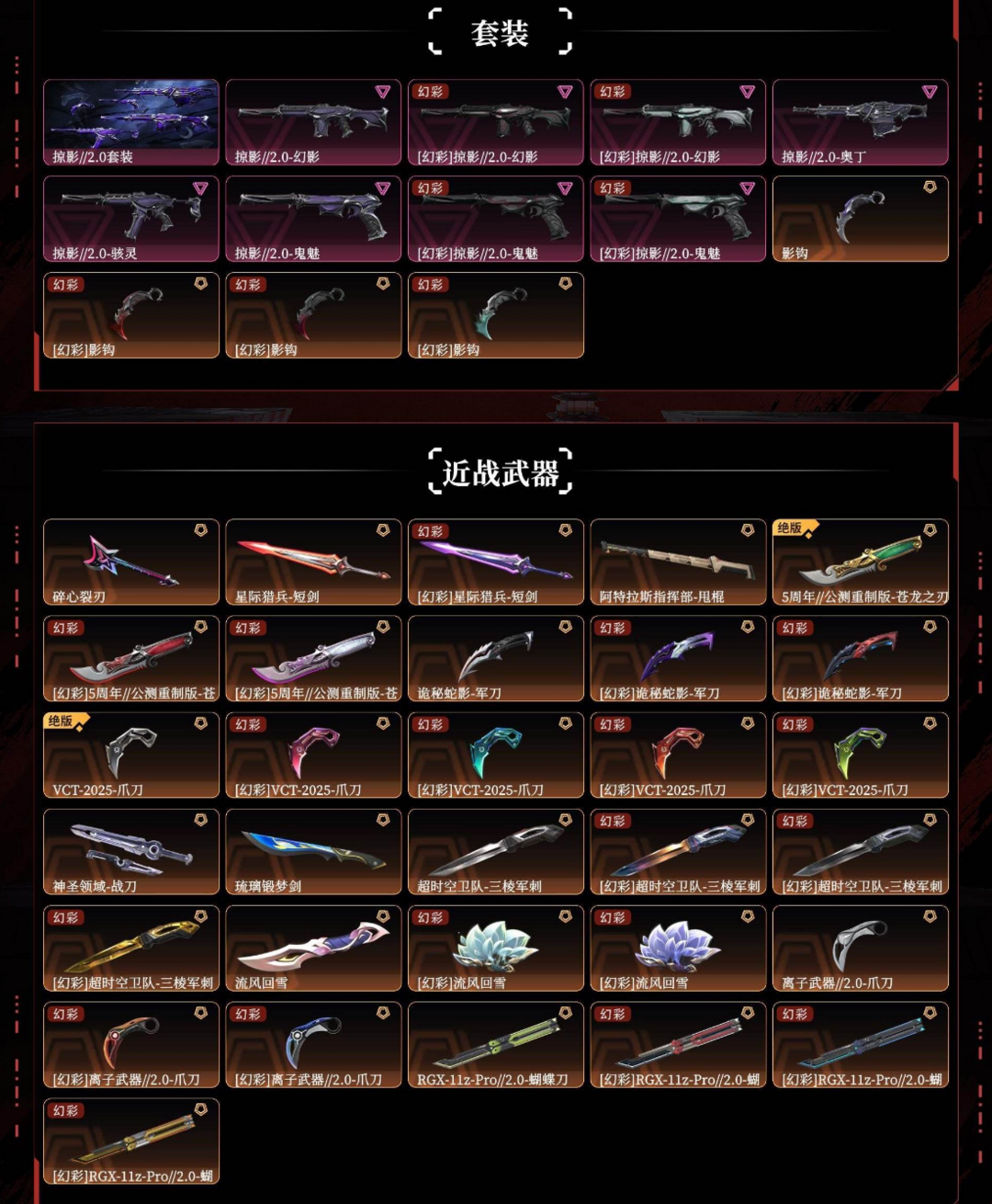 ⭐三棱+莲花+VCT爪+苍龙+影钩+离子爪+蝴蝶刀⭐掠夺套⭐AK混沌显卡离子盖世虚空⭐侦查幻影⭐奇点