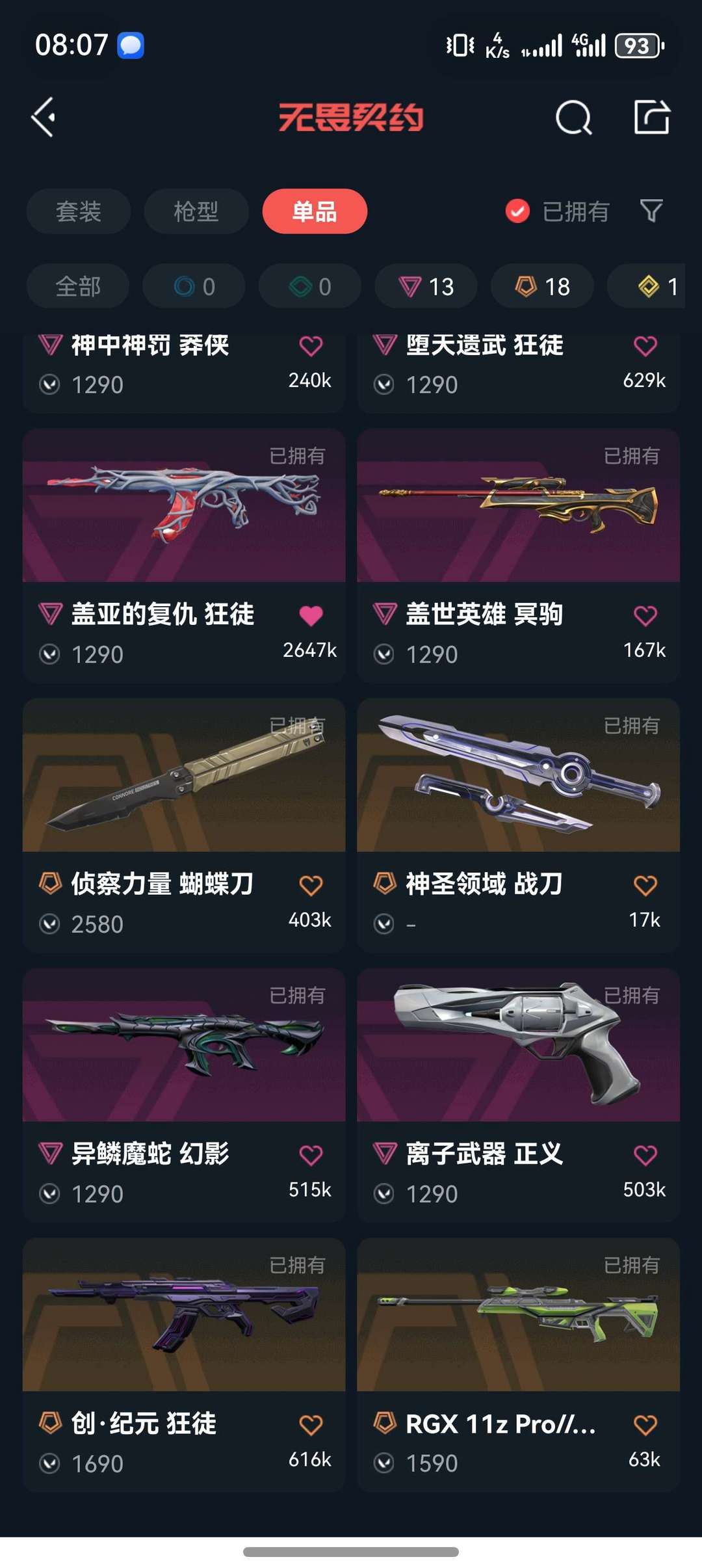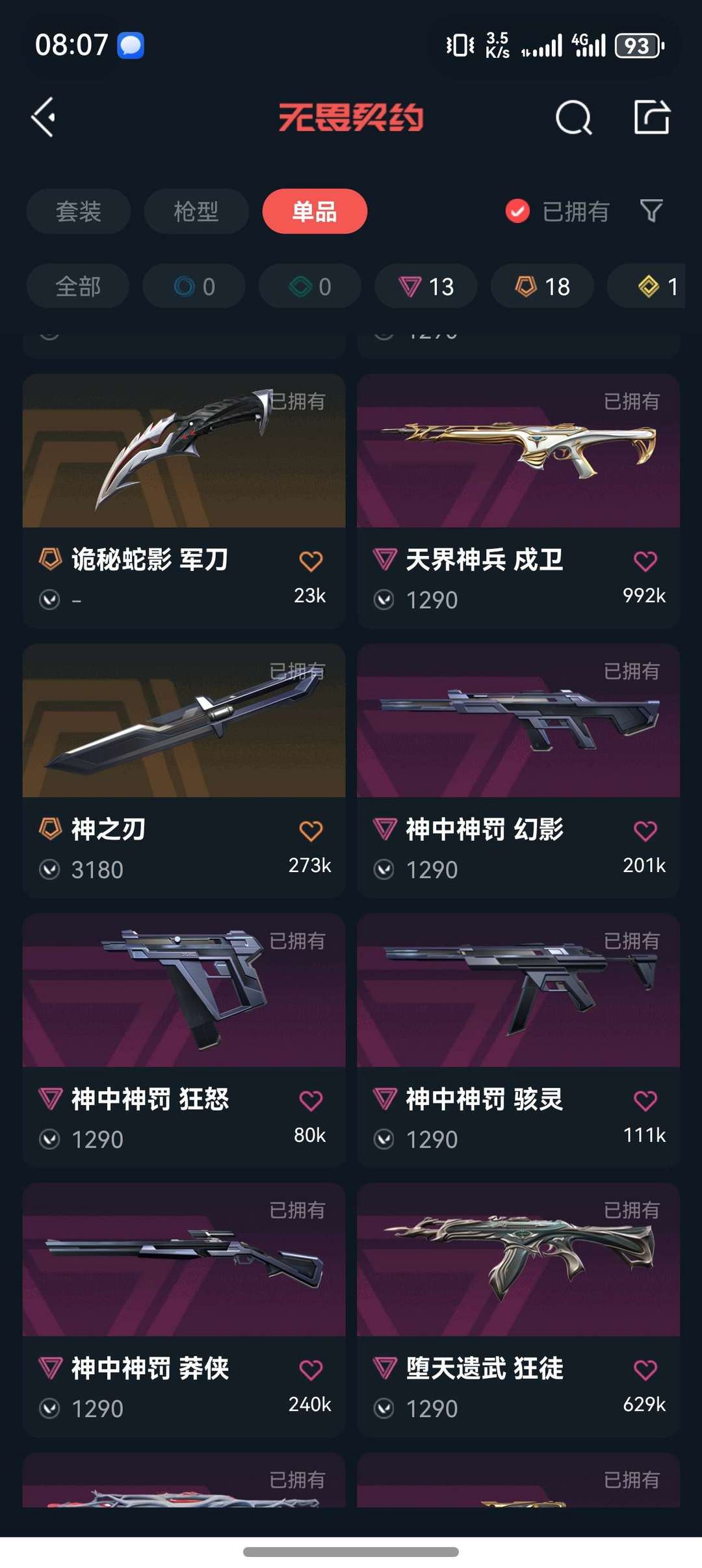 装备描述:神中神罚全套,ak有颗秒,紫金,盖亚,创世纪,弃王和光荣异象,幻影有蛇年,流脓,大狙有弃王狙,归零狙,猴狙,显卡狙,正义有离子,戍卫天界,撩犬暗夜怪谈,威龙鬼魅,侦查力量蝴蝶刀,盖亚之温刀,雷切
