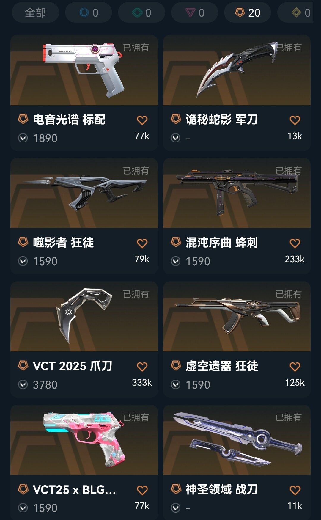 禁排✅电音光谱☀️VCT爪刀☀️蛇影军刀☀️西部未来嗜影者虚空遗器☀️创纪元般若太刀奇点2.0混沌流