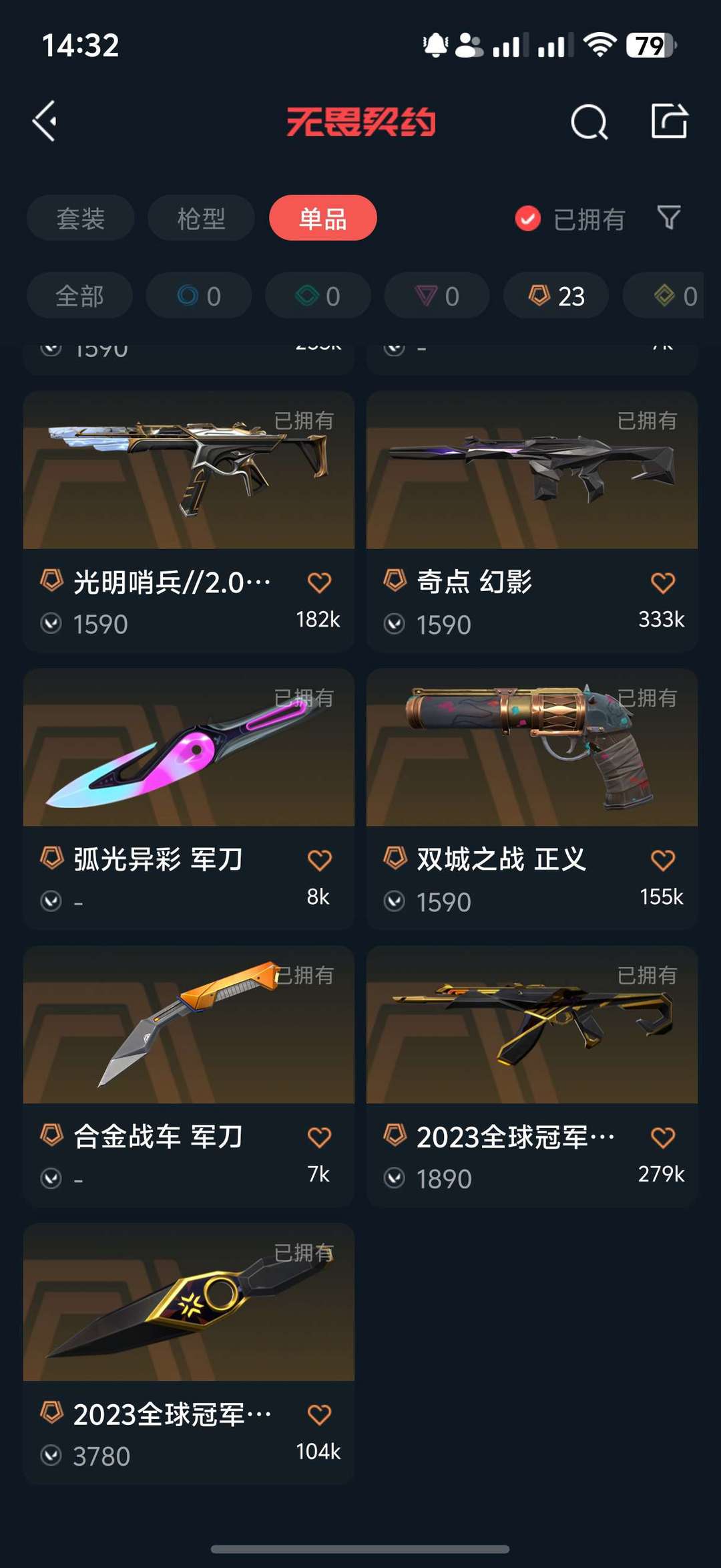 装备描述:随身武器:SEN战队标配 破败军械 鬼魅;双城之战 正义 冲锋枪:光明哨兵//2.0 骇灵光明哨兵//2.0 骇灵 粉红光明哨兵//2.0 骇灵 红/绿光明哨兵//2.0 骇灵 蓝/紫 步枪:机动狂飙 狂徒;2021冠军赛 狂徒;侦察力量 幻影;2023全球冠军赛 狂徒;洪荒怒焰 狂徒;归零者 狂徒;奇点 幻影奇点 幻影 红色奇点 幻影 蓝色奇点 幻影 紫色 狙击步枪:天界神兵 飞将 近战武器:2021冠军赛 爪刀;2023全球冠军赛 苦无;雪季巡游