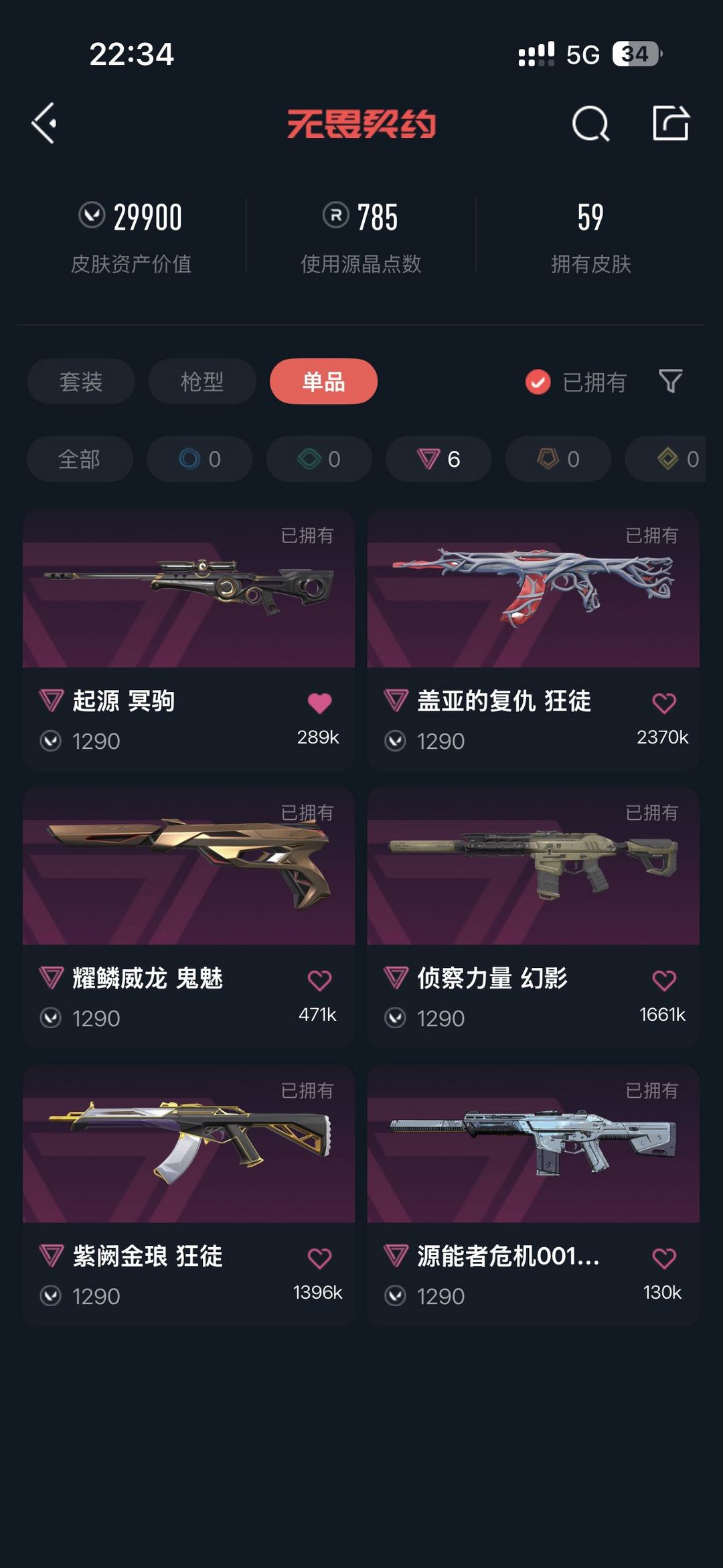 狂徒6把皮肤:多米尔复仇盖亚25冠军光荣异象紫金幻影:侦查 源能者001鸟狙:塑水宗 大狙:起源