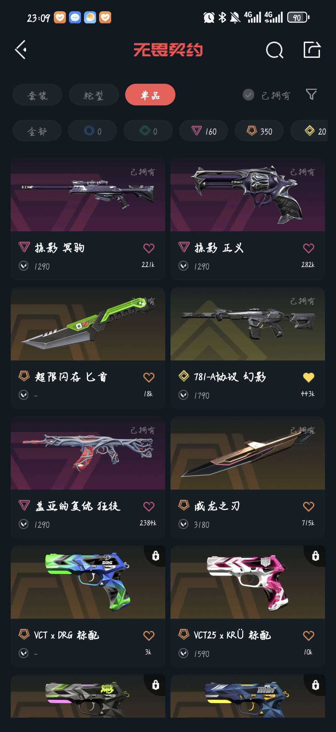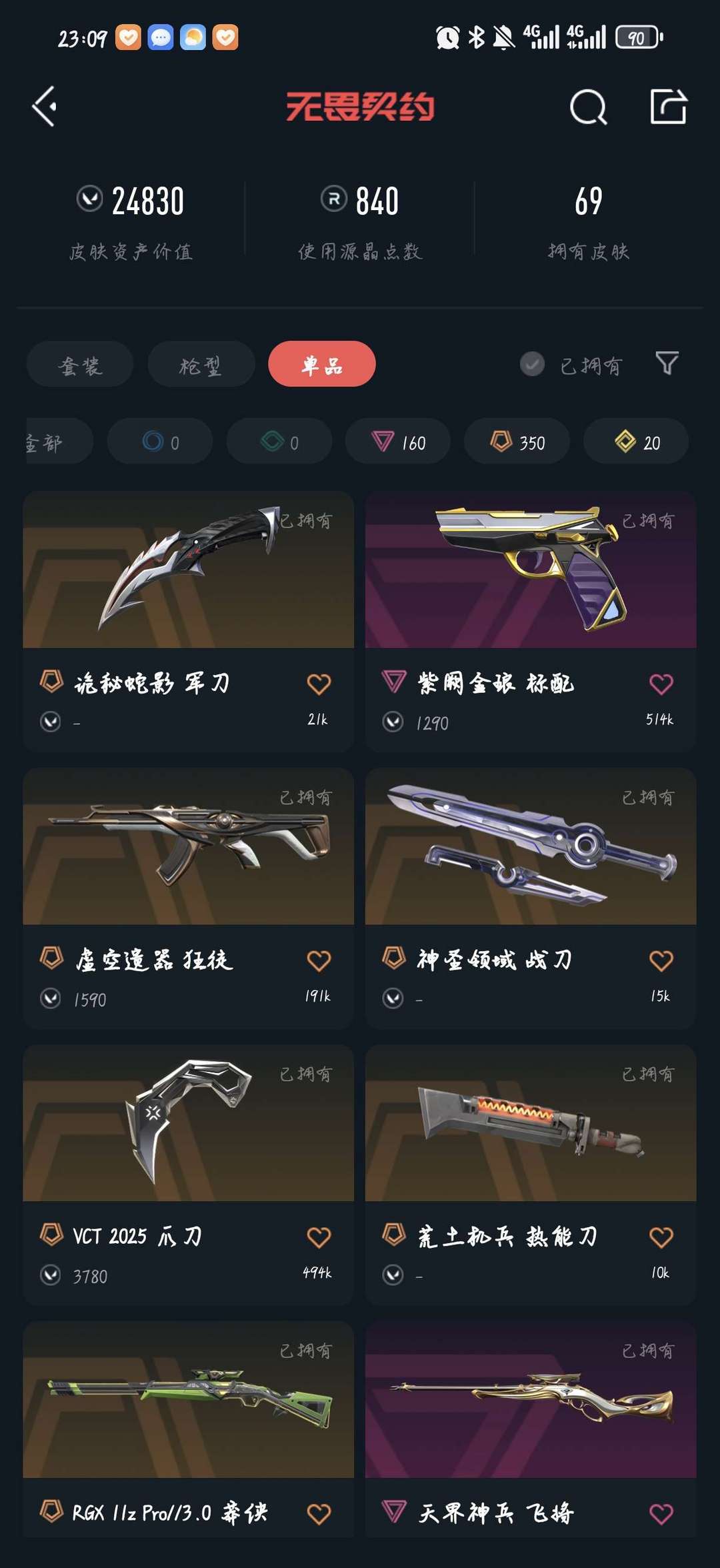 装备描述:新冠军爪刀,掠影1.0套装,盖亚ak 781幻影,威龙小刀,虚无ak等