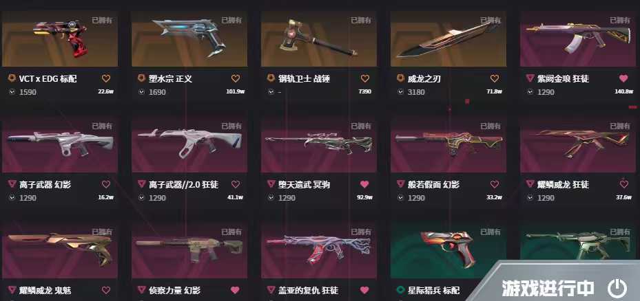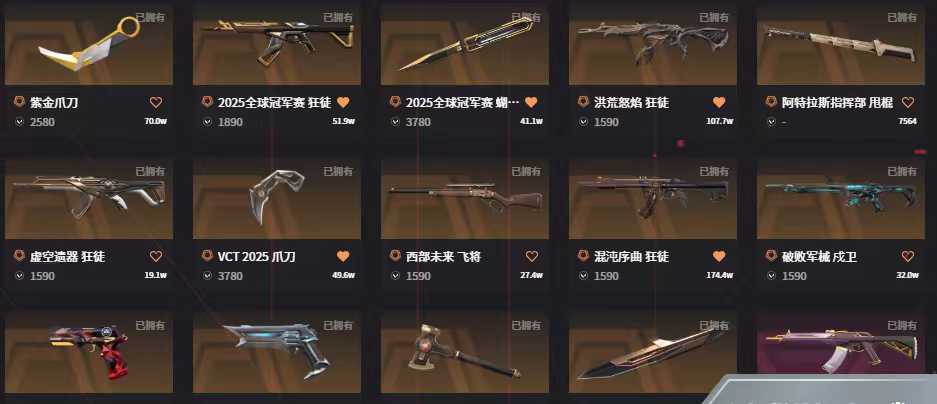 装备描述:赚钱不易文明游戏不要挂机VCT2025爪刀2025全球冠军套冠军蝴蝶耀鳞威龙全套狂徒混沌盖亚四幻神幻影侦查幻影假面正义塑水宗紫金爪刀特效全满