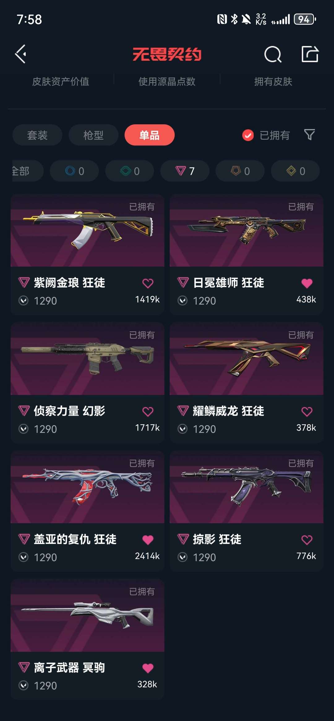 ❤混沌显卡AK❤镭切套❤掠夺❤紫金爪刀❤侦查M4❤奇点西部正义❤离子狙❤VCT标配*莲花喷