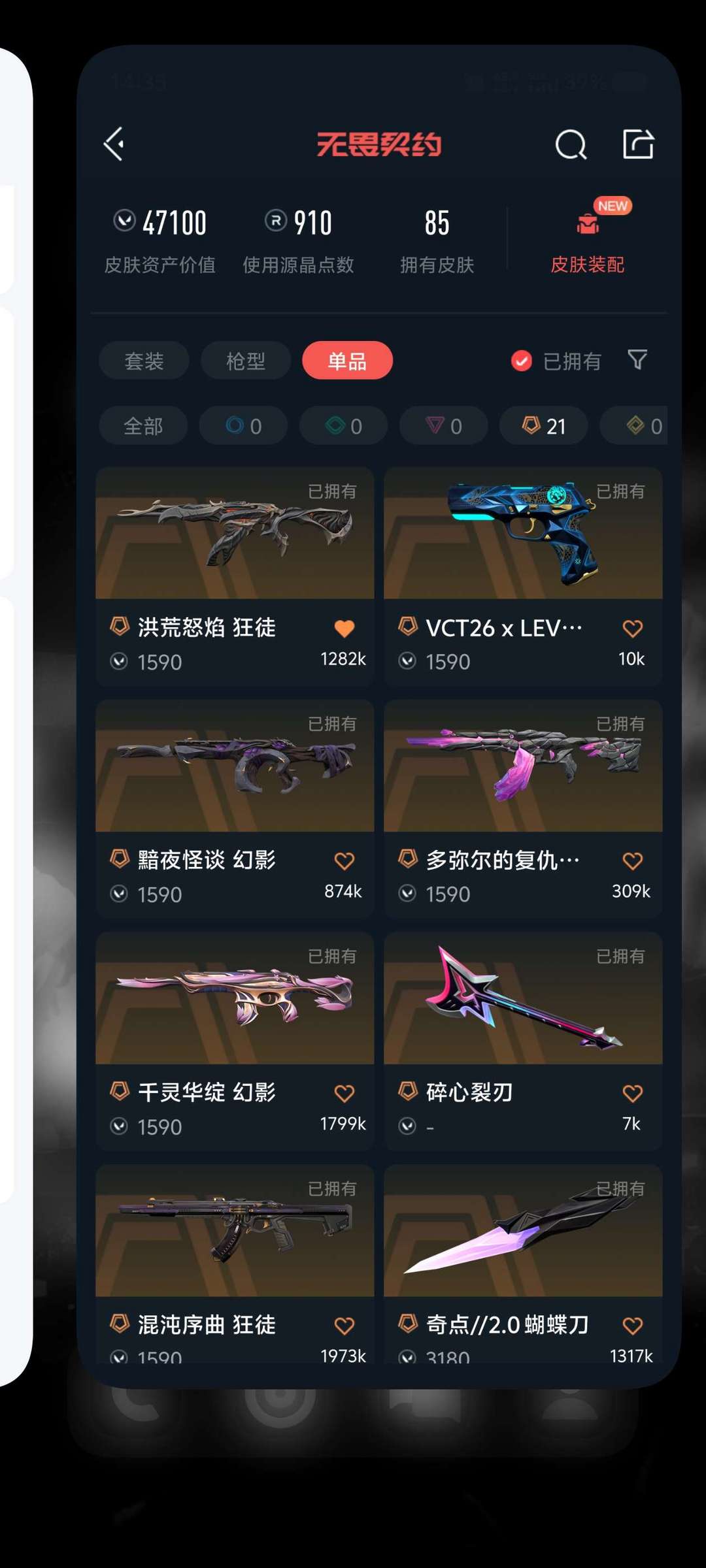 无畏契约 账号皮肤齐全ak热门皮肤 蝴蝶刀 爪刀 冠军ak 蝴蝶刀奇点塑水宗盖亚流脓混沌