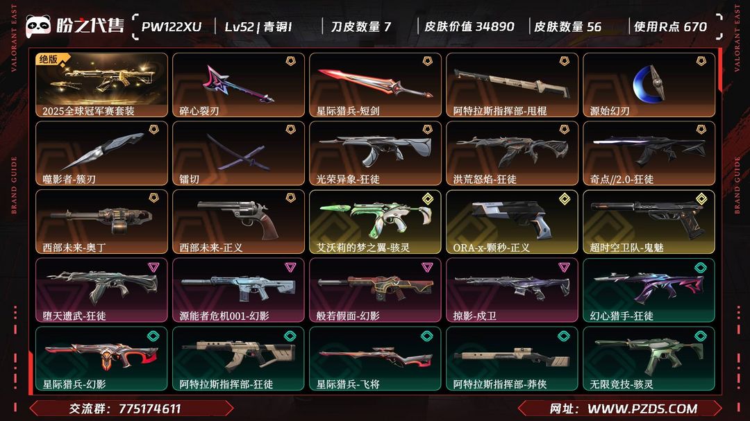 装备描述:可排位✨25冠军套装✨雷切/簇刃/幻刃✨流脓/弃王/奇点/异象狂徒✨源能/般若幻影/掠影戍卫✨艾沃莉骇灵/西部奥丁✨西部/颗秒正义/超时空鬼魅✨