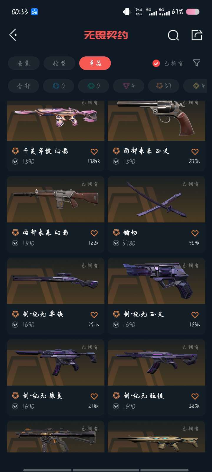 每个枪至少一个好枪皮,常用枪和刀每枪至少六七个,有几个紫没排上