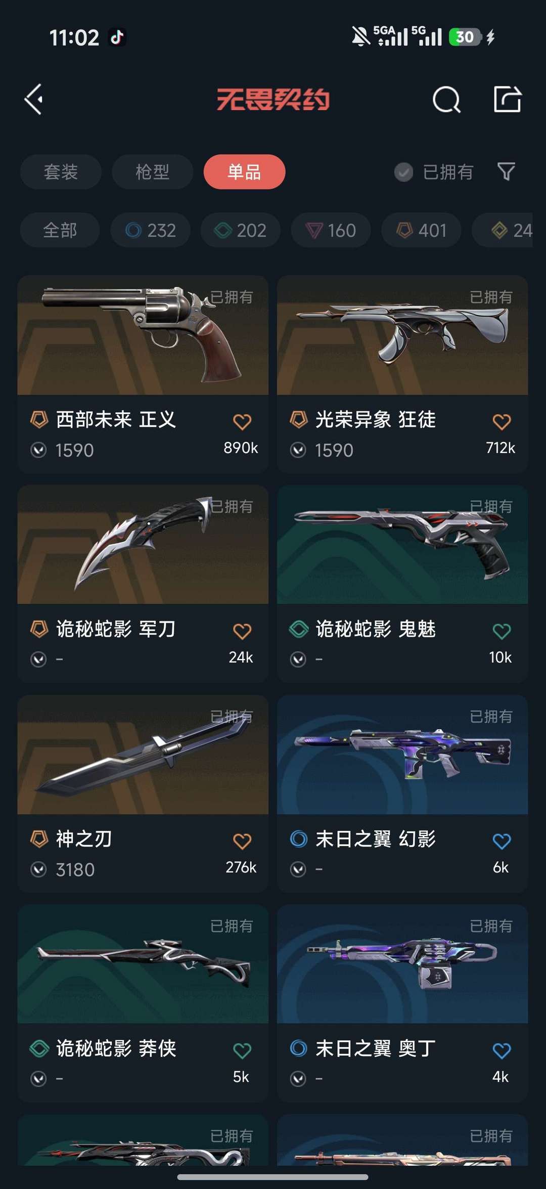 24个皮肤,光荣异像狂徒⭐狮子狂徒⭐归零者狂徒⭐恶鬼幻影⭐神中神罚刀皮⭐颗秒大狙