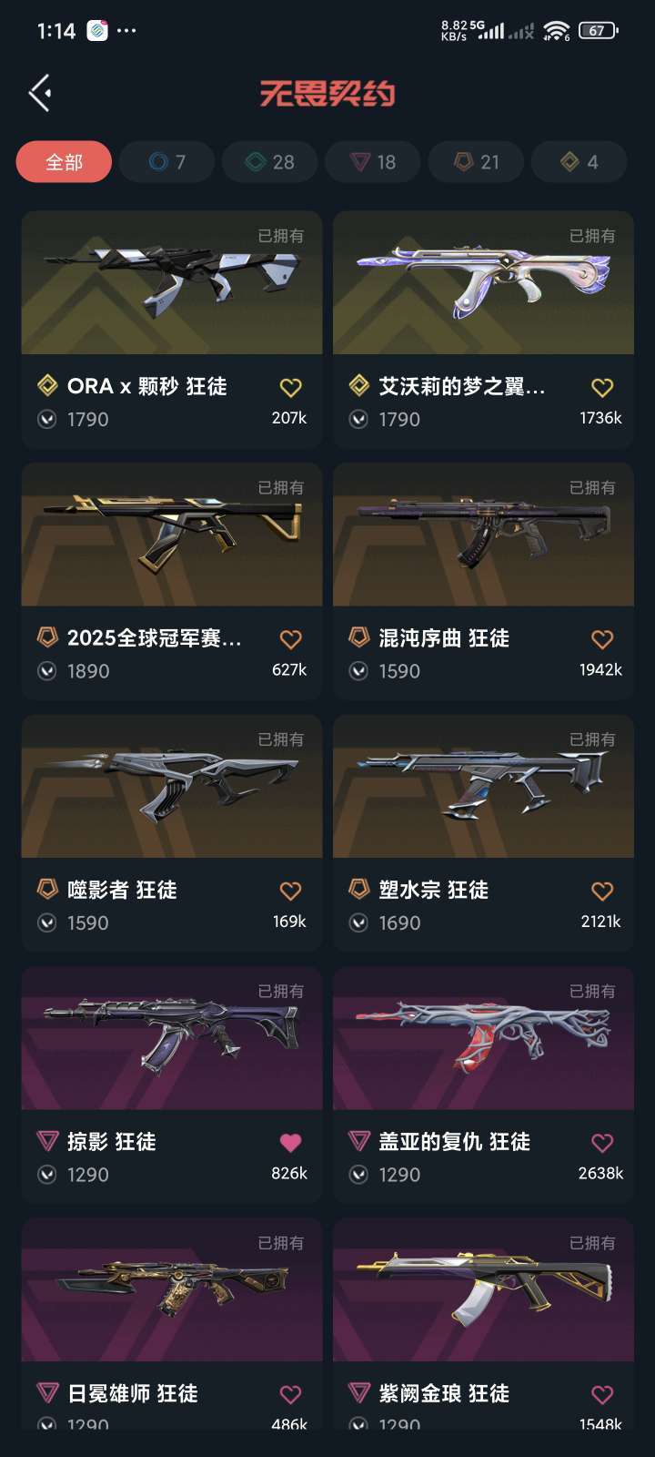 全角色+除了喷子都有特效皮+主战皮都是多把,vct爪刀+25冠军套+塑水宗狂徒和鸟狙
