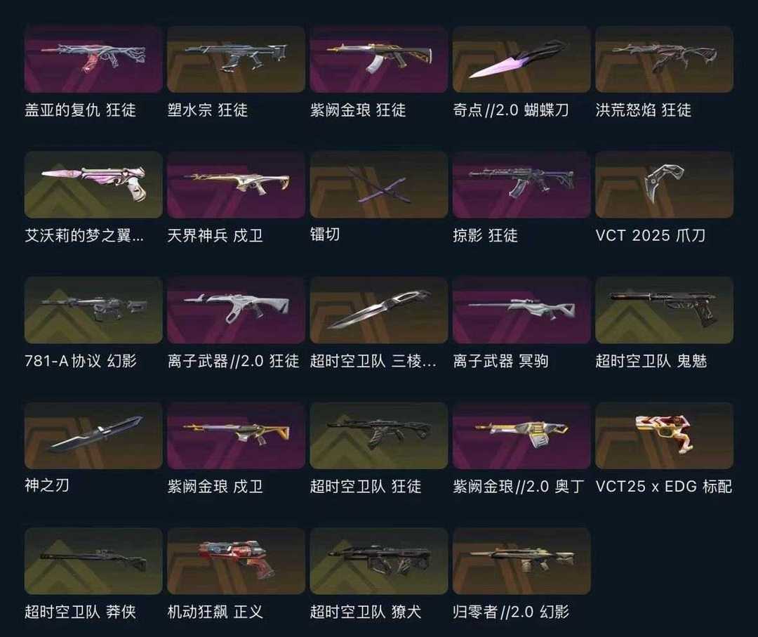 可排❤️超时空全套❤️盖亚塑水紫金流脓掠影离子ak❤️三棱刀镭切25爪刀奇点蝴蝶刀神之刃