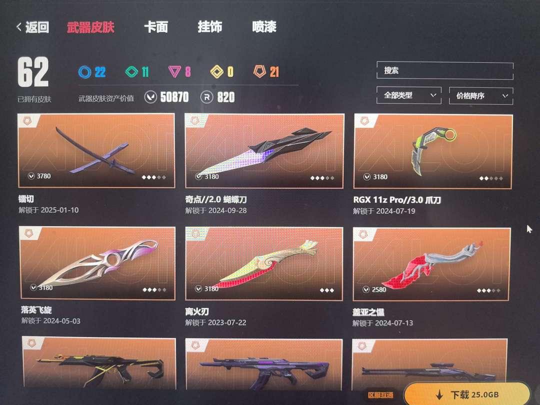 武器皮肤数量:62
