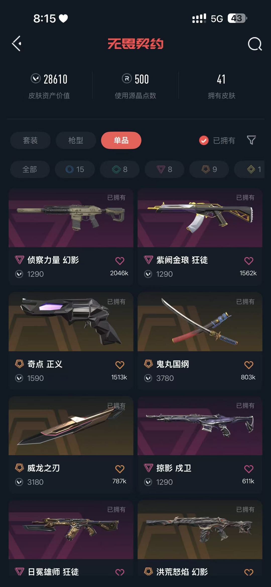 武器皮肤数量:41