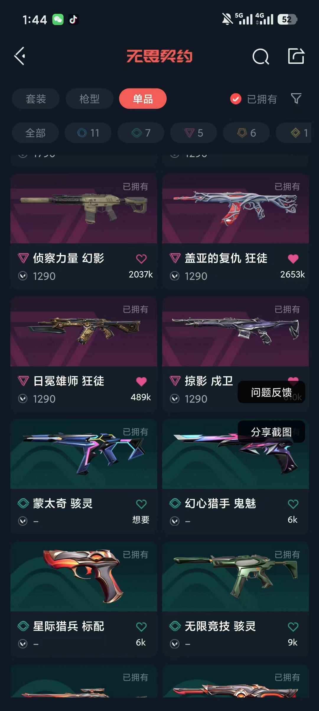 狂徒6把幻影1把正义1刀3紫金显卡盖亚怜悯侦查25冠军套等