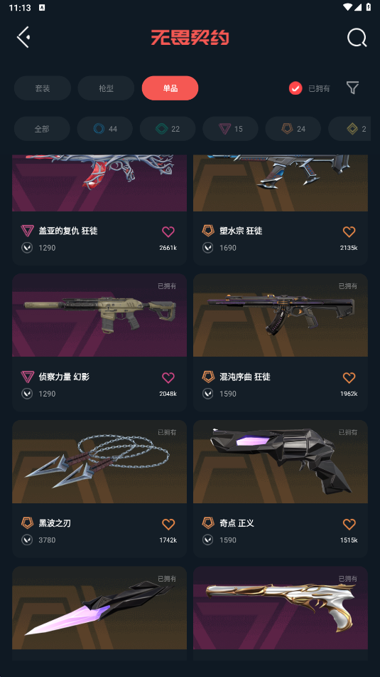 武器皮肤数量:107