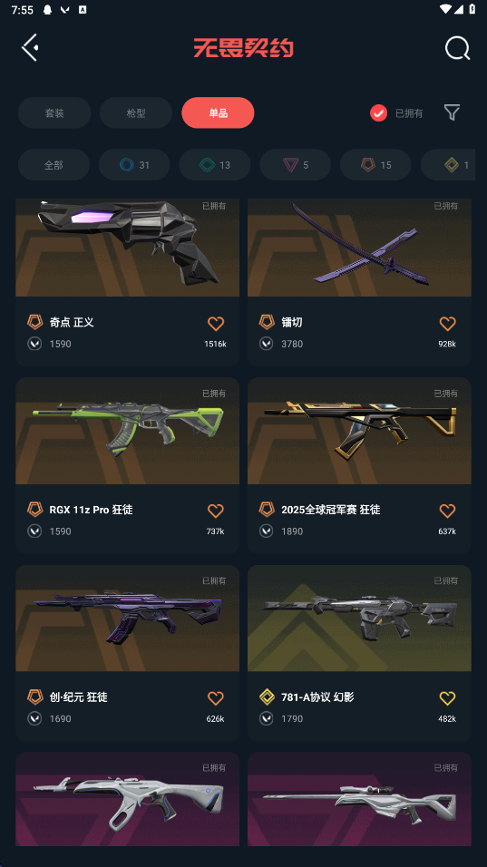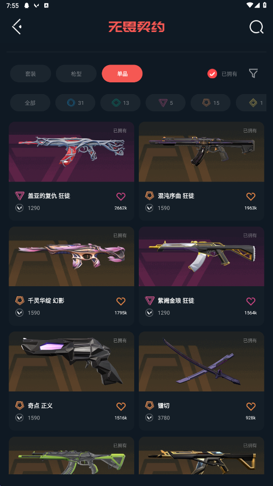 武器皮肤数量:65