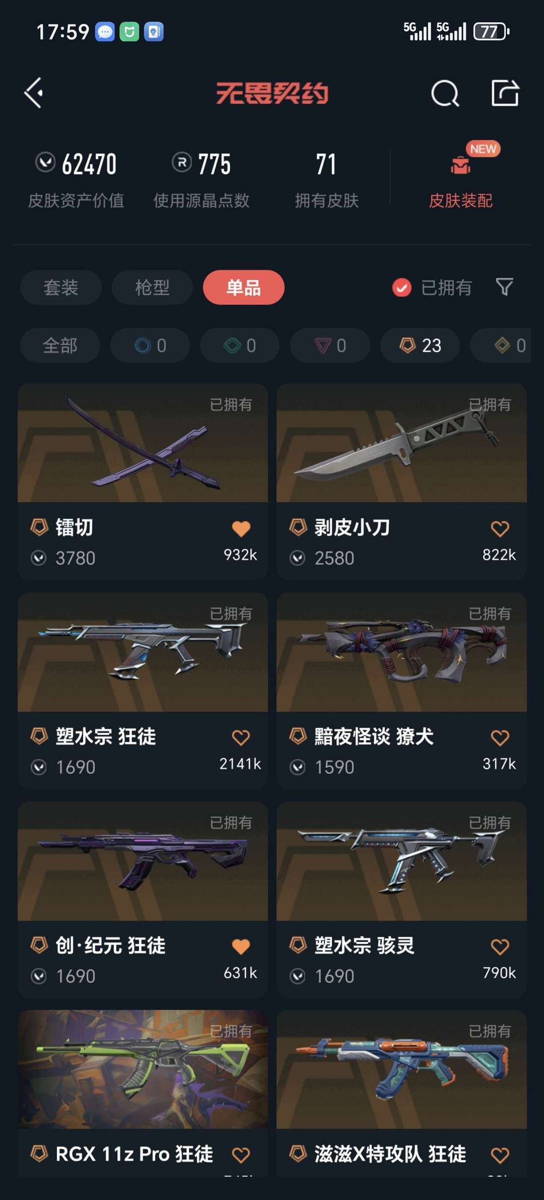 禁言到19号 看清在租 莲花2.0套装 盖亚狂徒 781 天界幻影 显卡爪刀狂徒 剥皮小刀