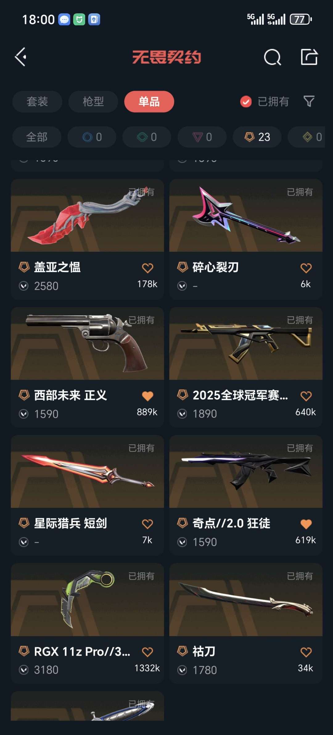 传奇数量:23