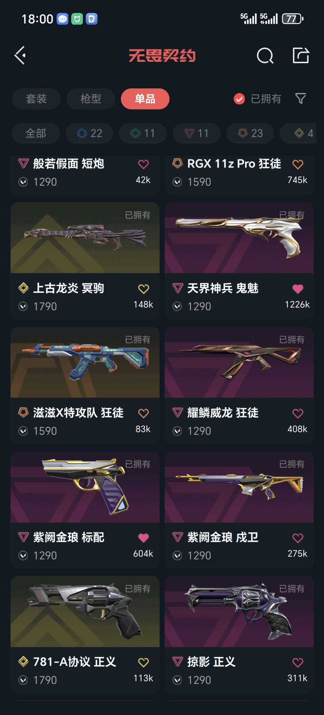 武器皮肤数量:71