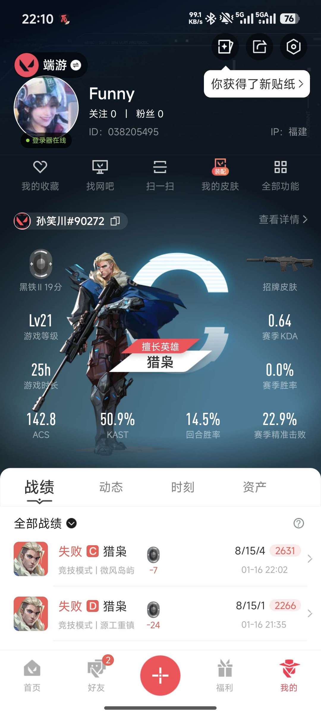 无畏契约低段位未定级号,可陪玩带妹炸鱼,禁止开挂,无皮肤装备