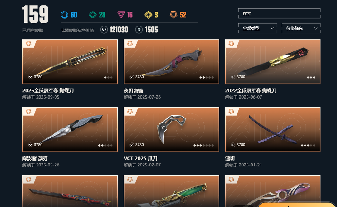 武器皮肤数量:159