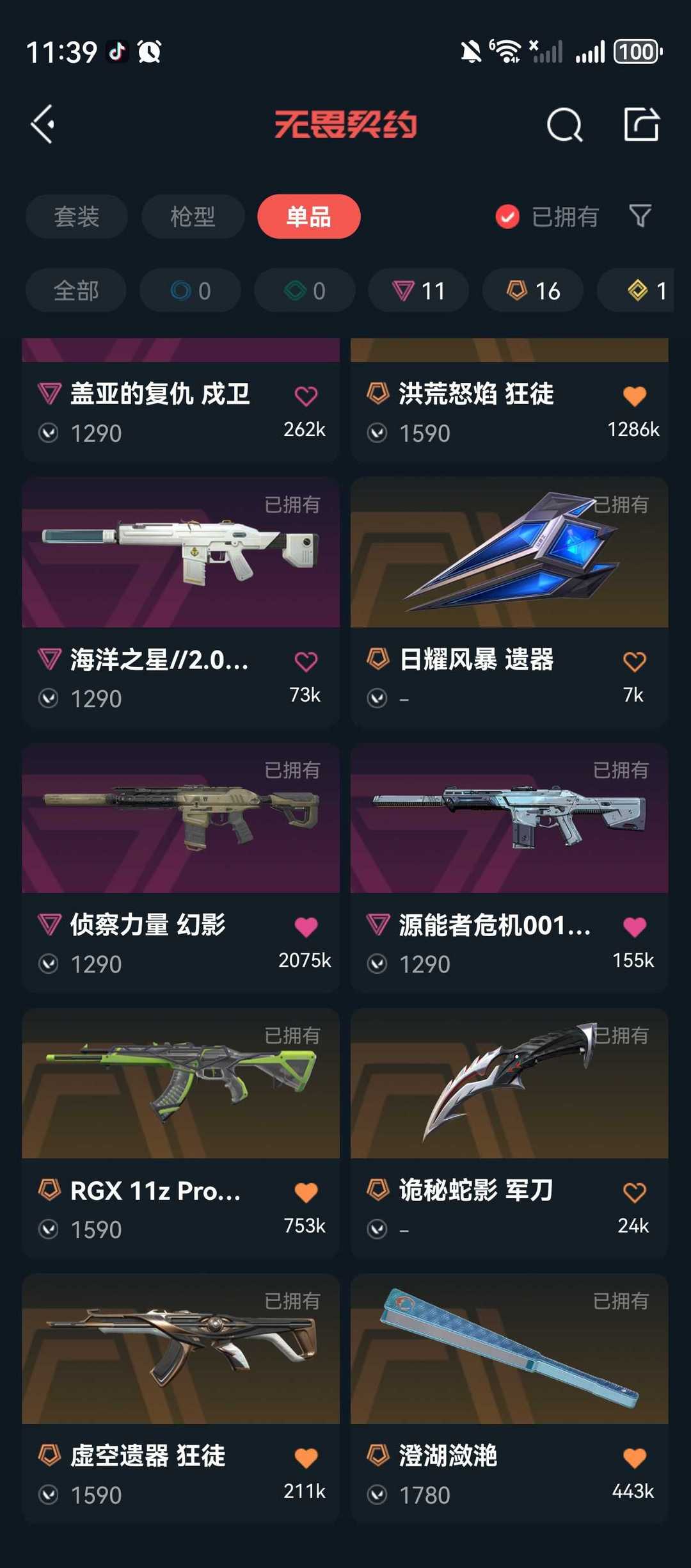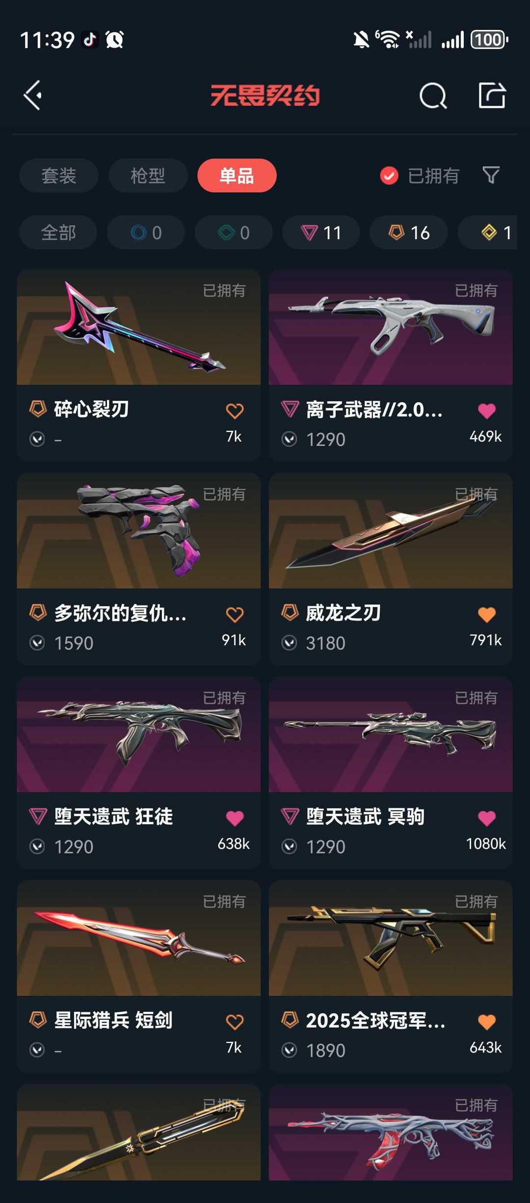 传奇数量:16