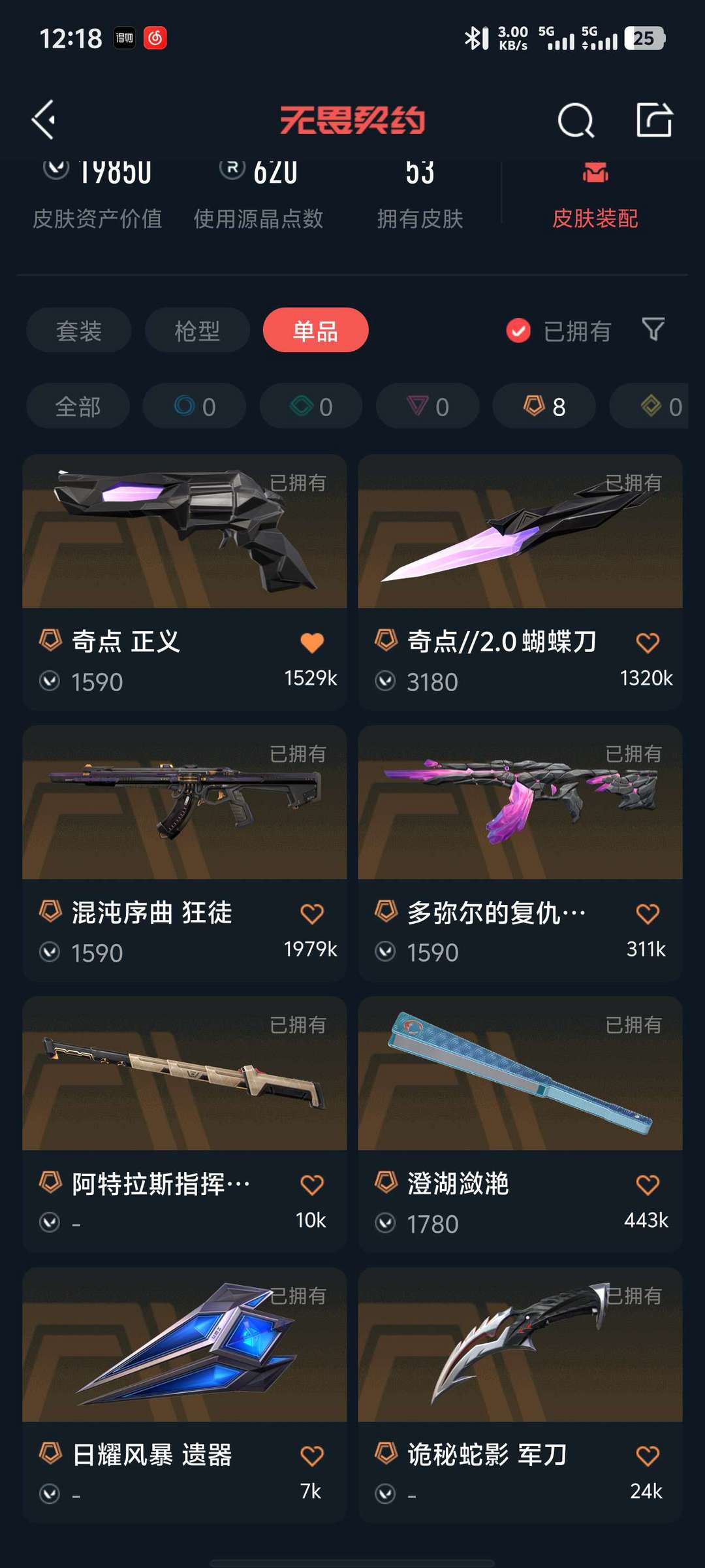 有常用皮肤毕业皮刀是奇点蝴蝶刀