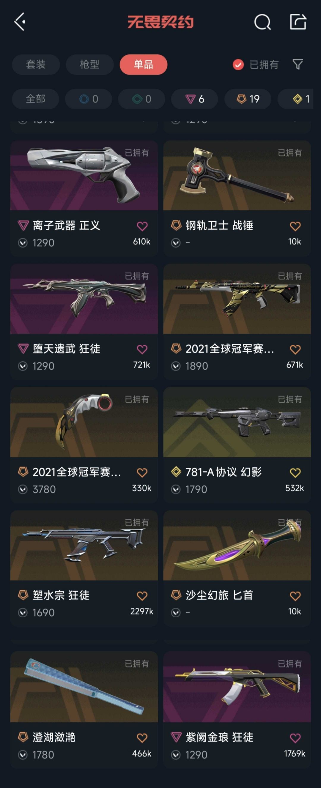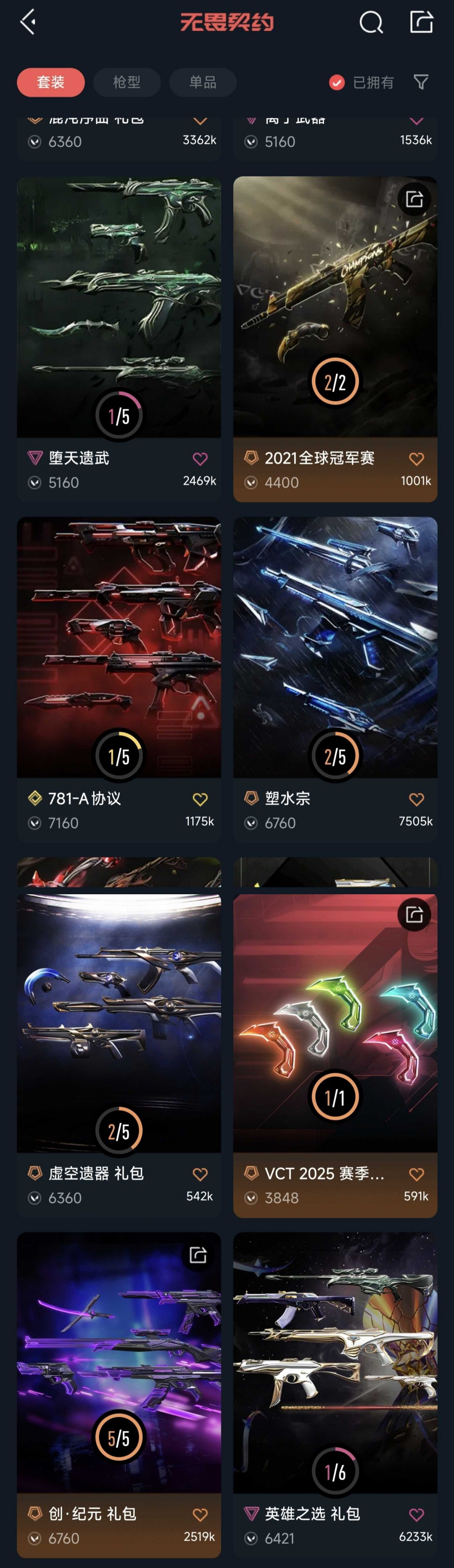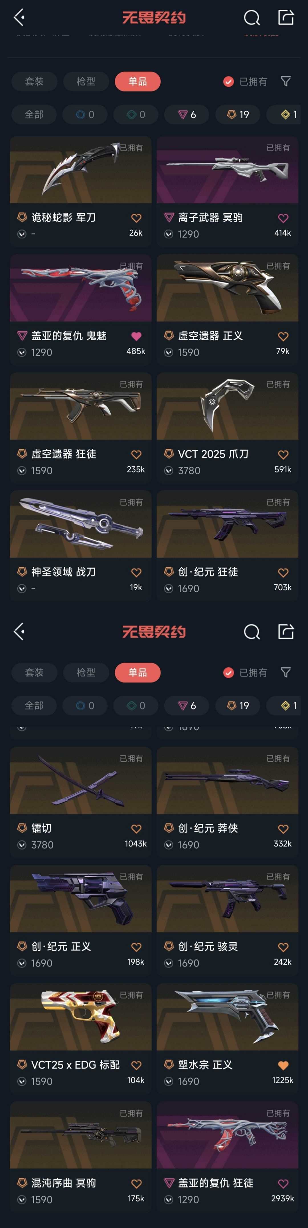 可排位8万库存!21冠军全套!纪元套!vct爪刀/标配!塑水宗虚空堕天紫阙盖亚狂徒协议幻影