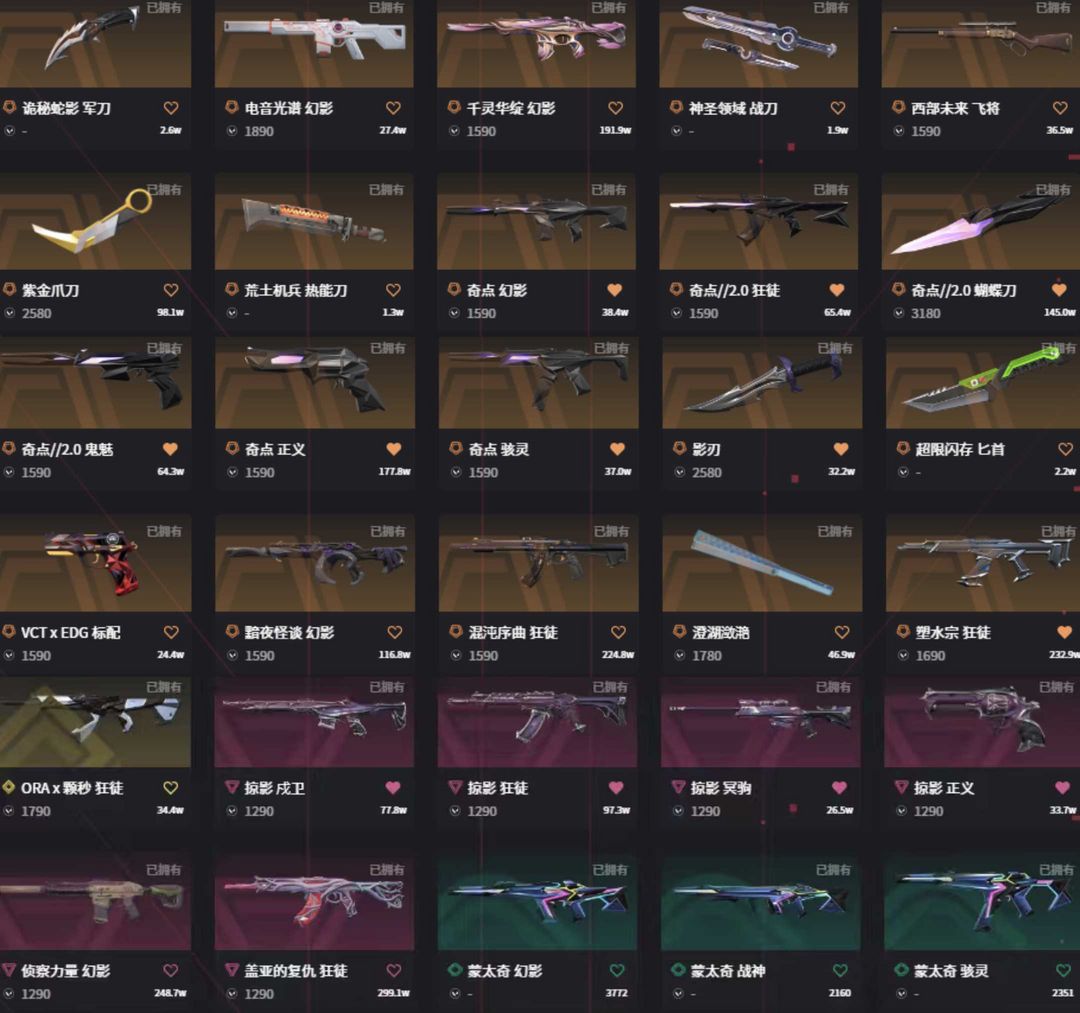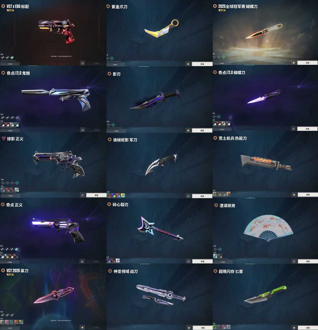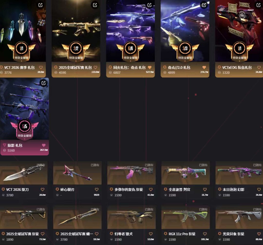 vct篆刀紫金爪✨25冠军套全奇点套✨塑水混沌多弥尔盖亚光荣颗秒显卡ak✨黯夜莲花电音侦察末日m4